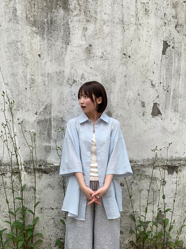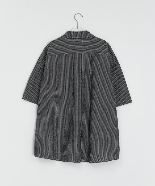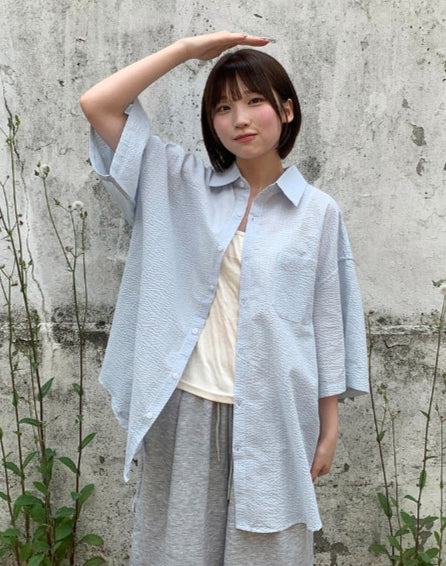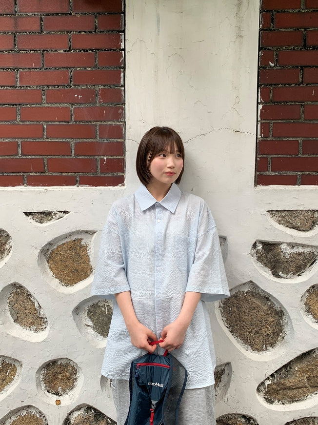 [男女兼用]ミュセントシアサッカーストライプオーバー半袖シャツ