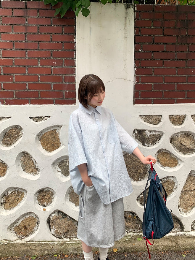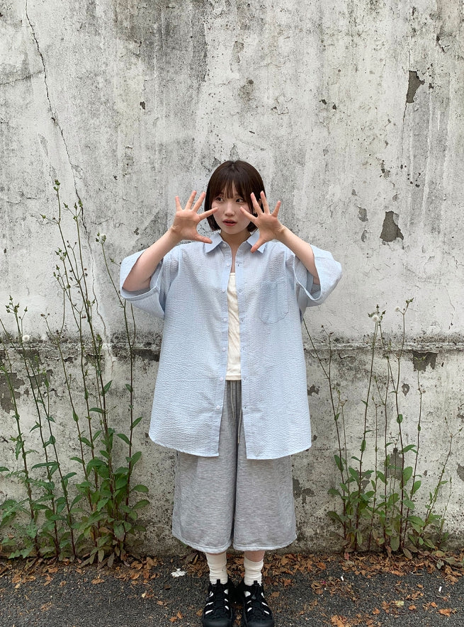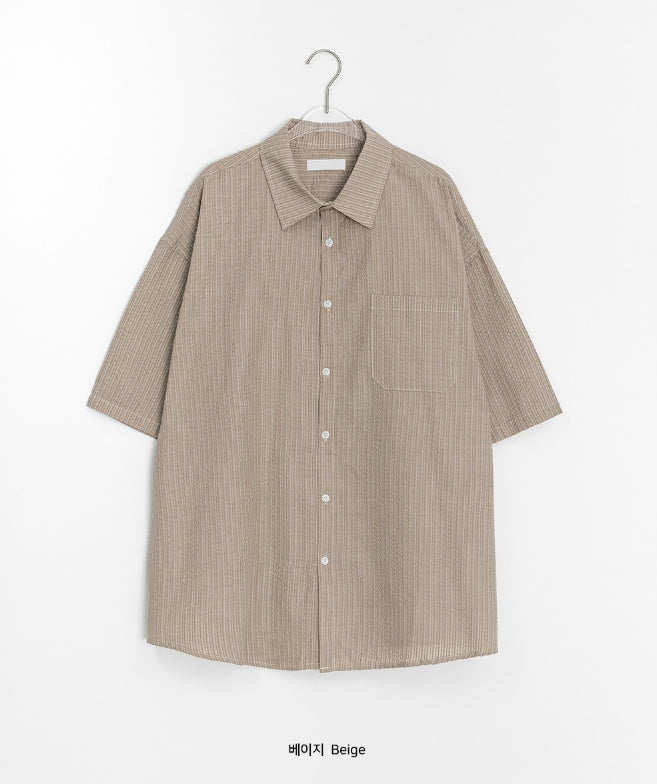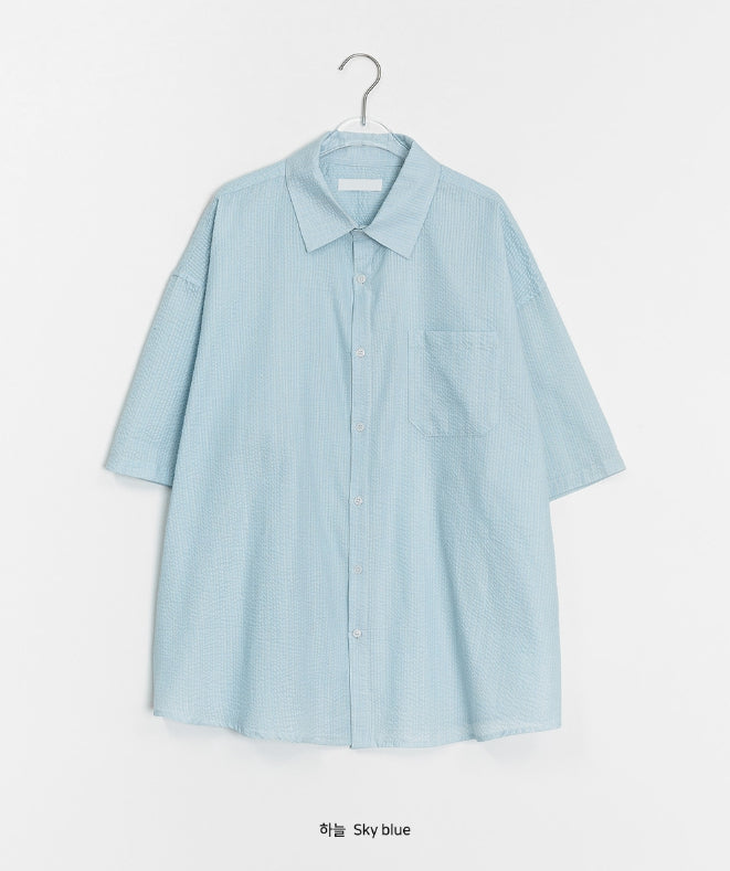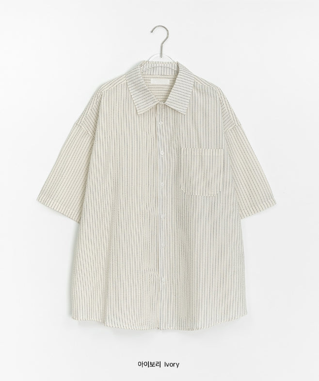 [unisex] Musent Seersucker Stripe Over Short Sleeve Shirt