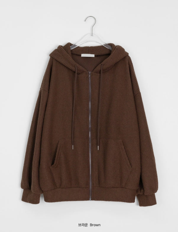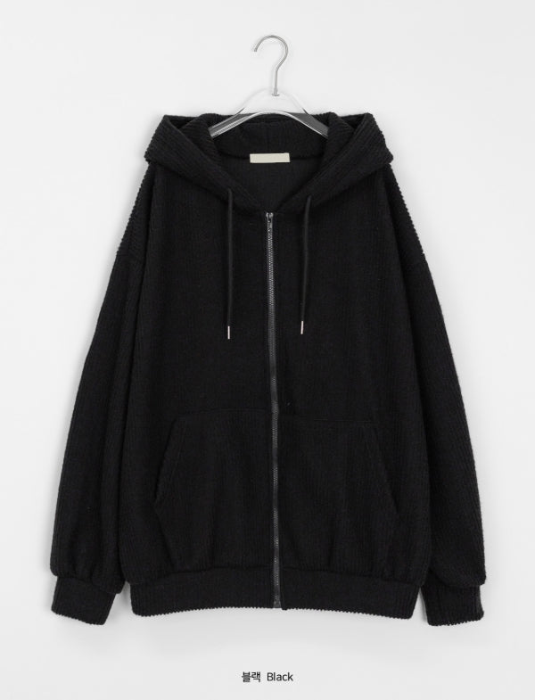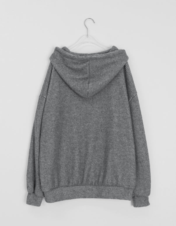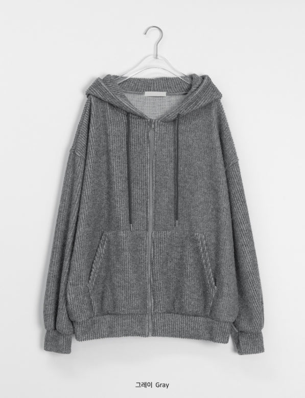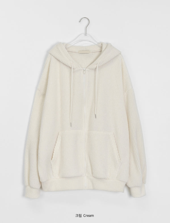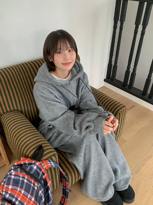 [unisex] Nicoto ribbed knit over hood zip-up set-up