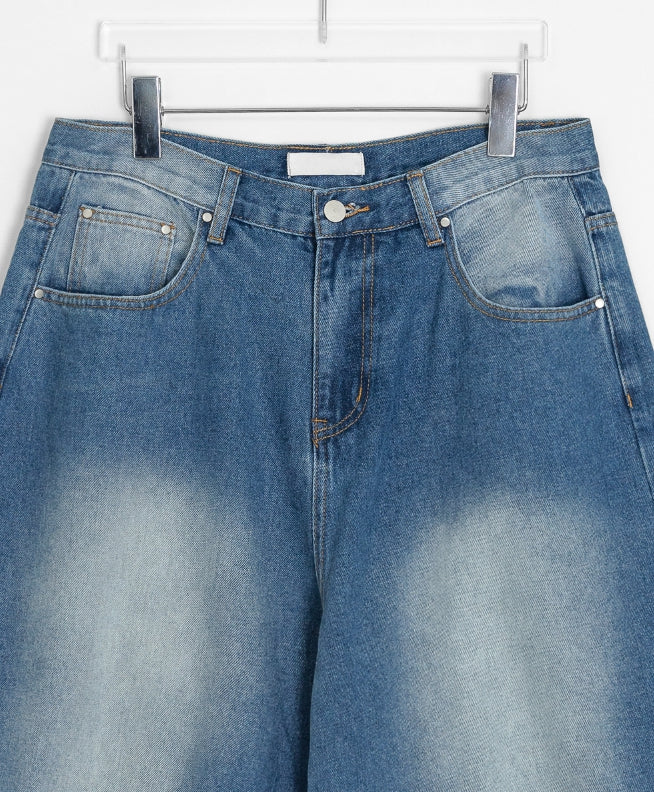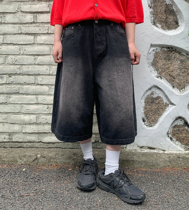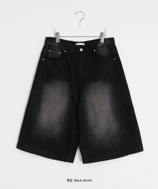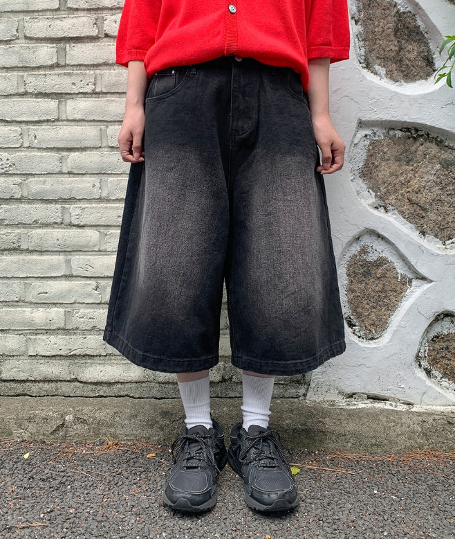 [男女兼用]プチュウォッシュ加工デニムバミューダパンツ