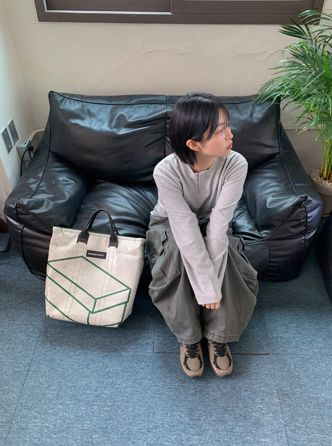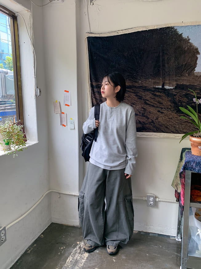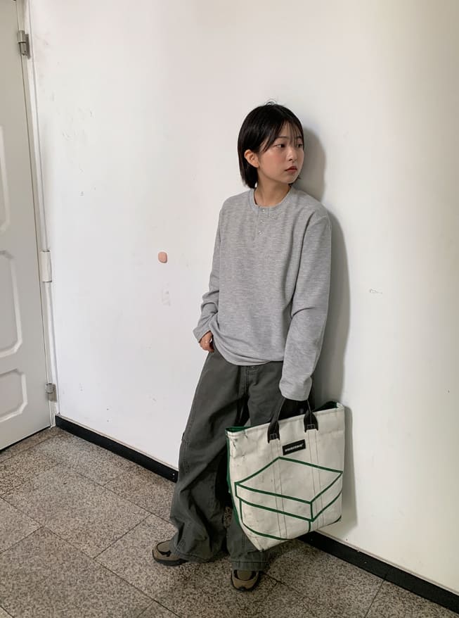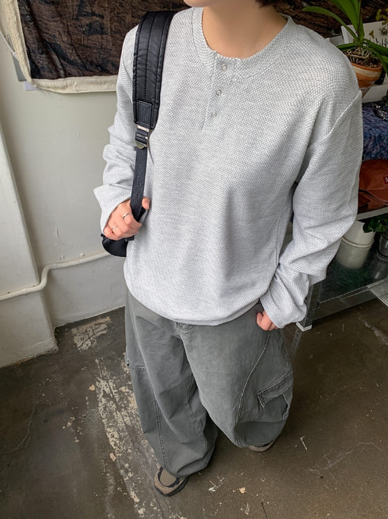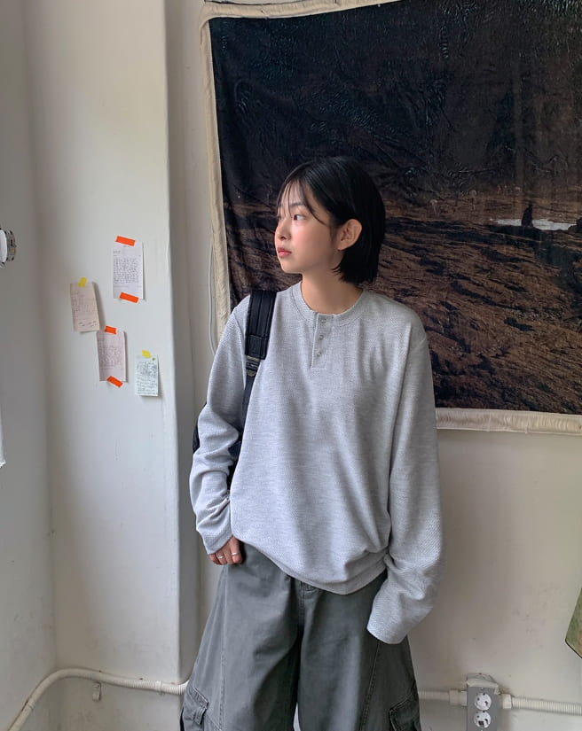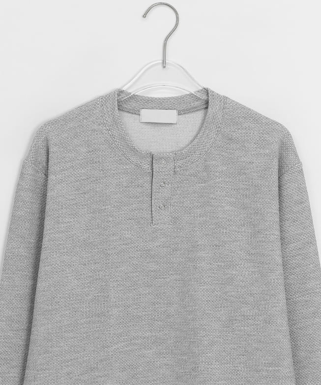 [男女兼用]ペントワッフルヘンリーネックオーバー長袖Tシャツ