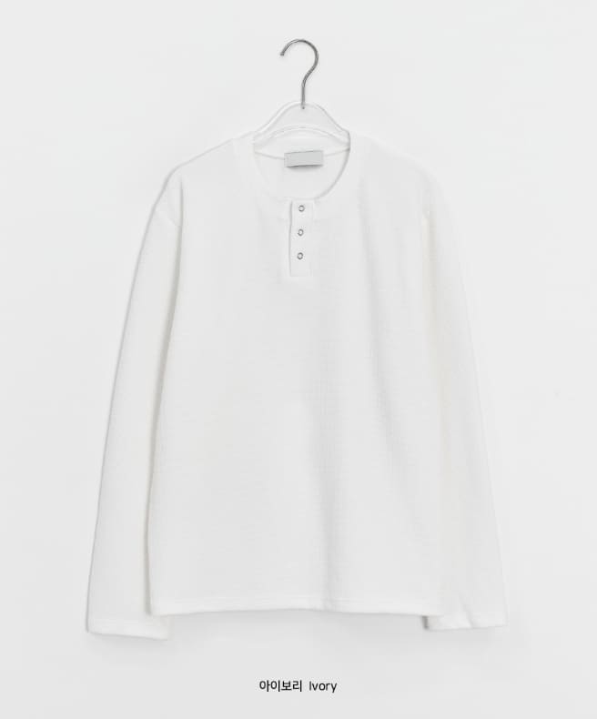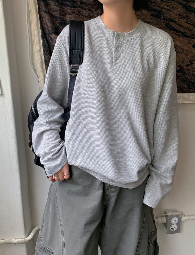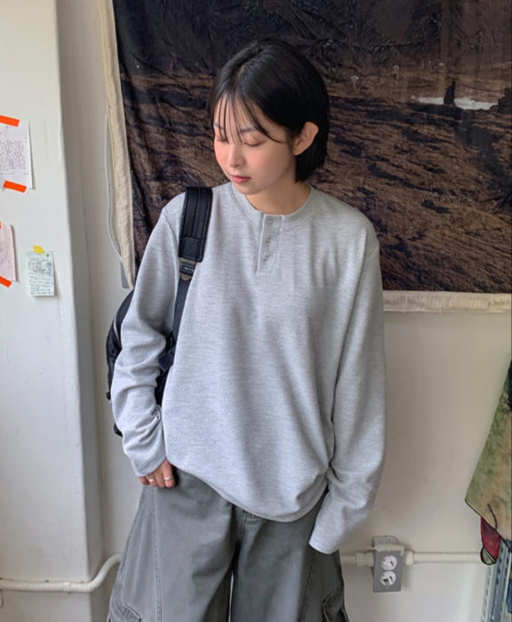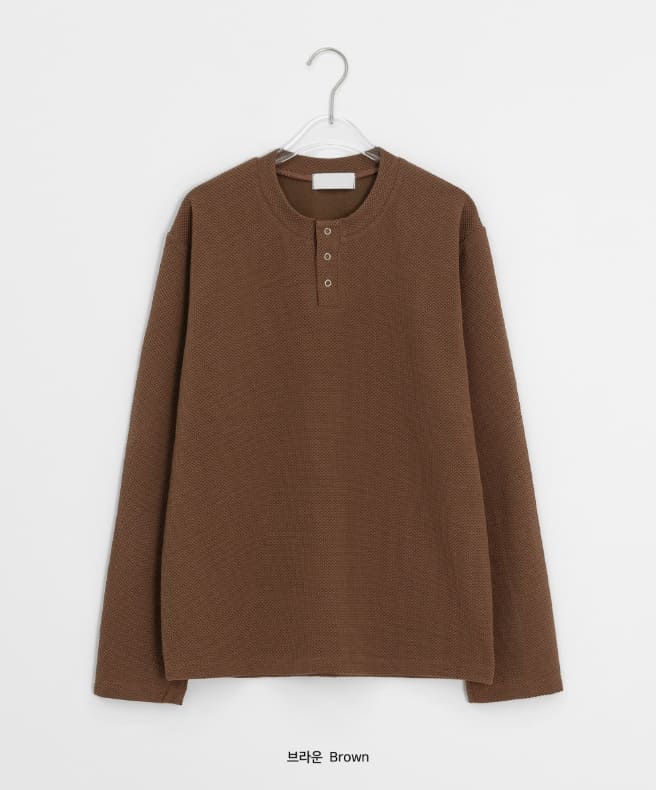 [unisex] Pental Waffle Henley Neck Over Long Sleeve Tee