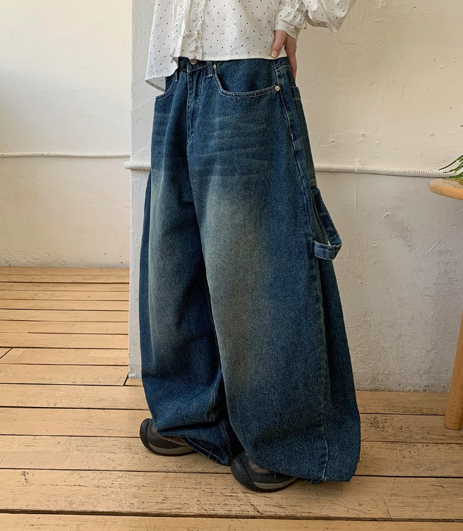 [男女兼用]ピヒョカーペンターバルーンデニムワイドパンツ