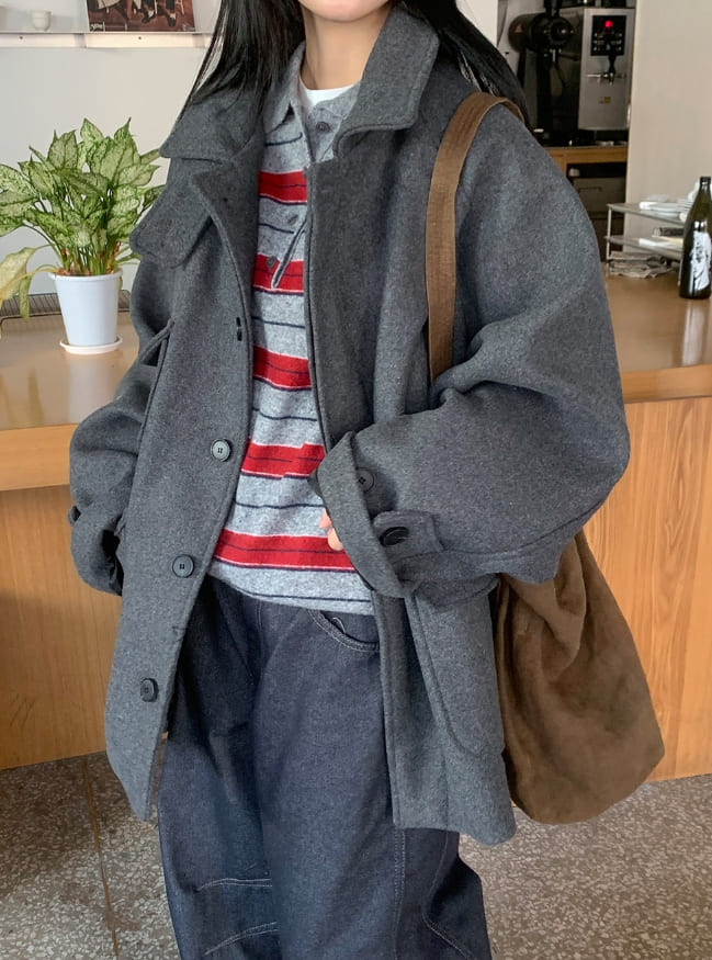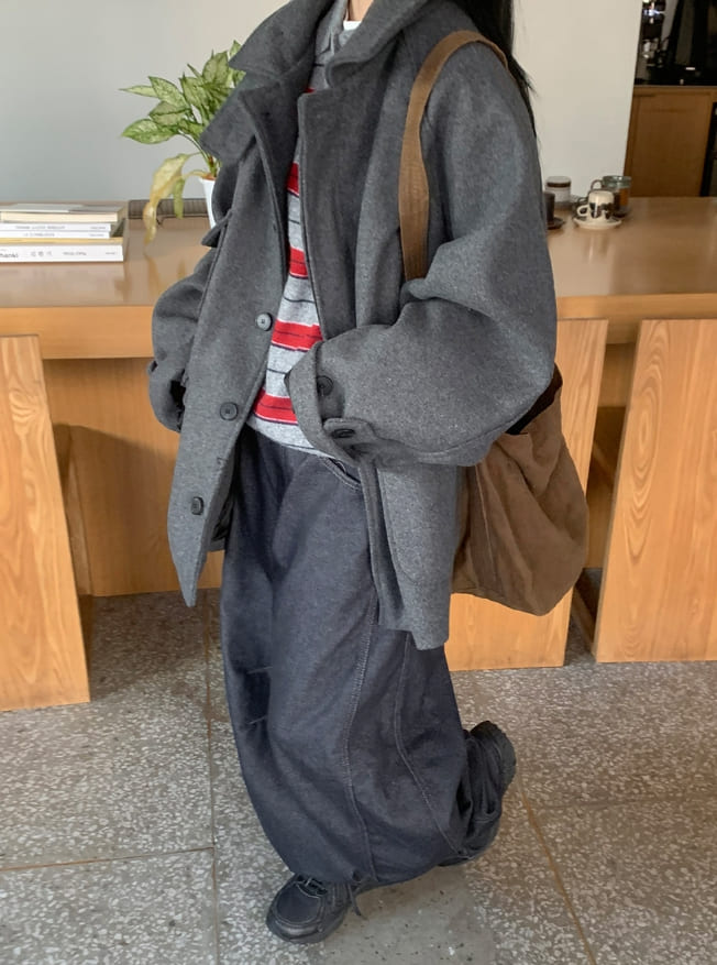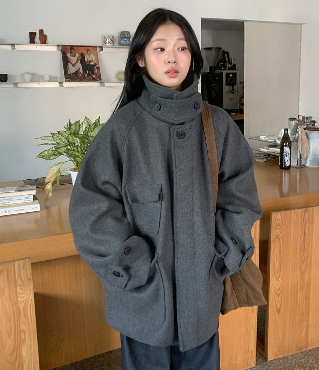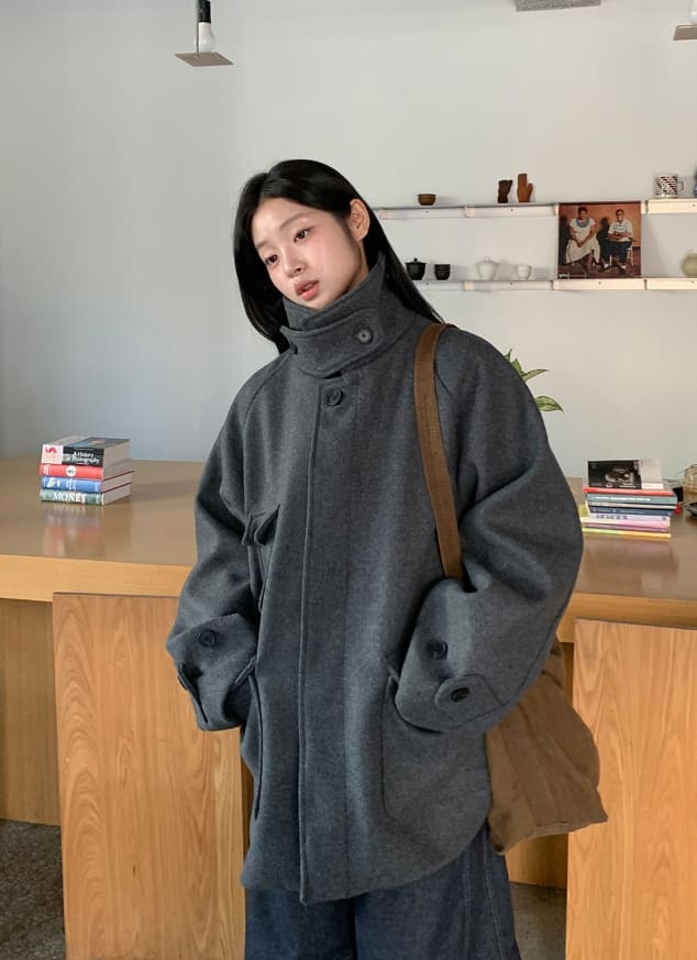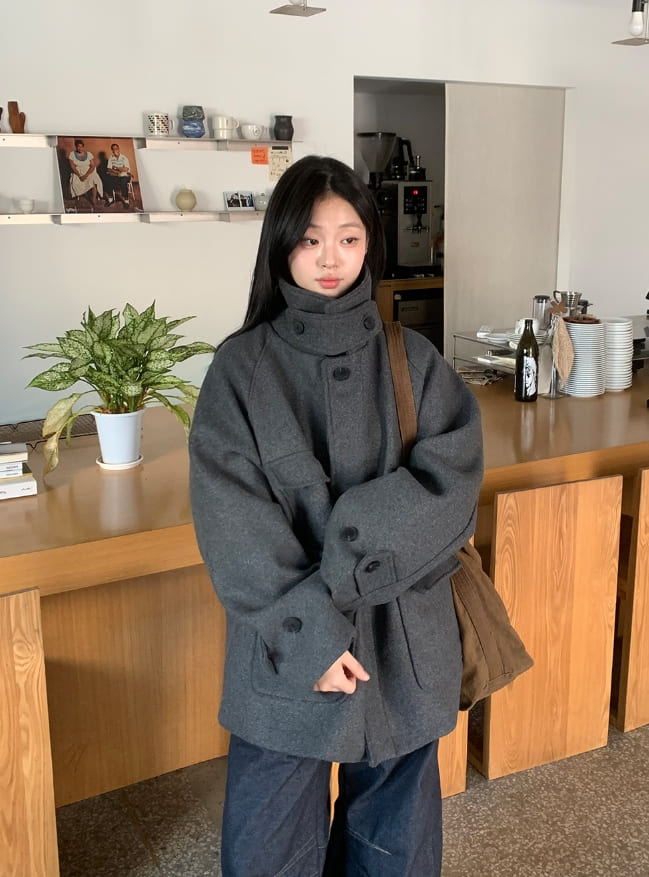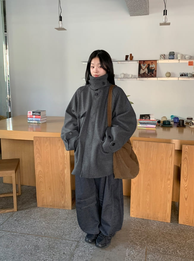 [unisex] Popis Wool High Neck Half Coat