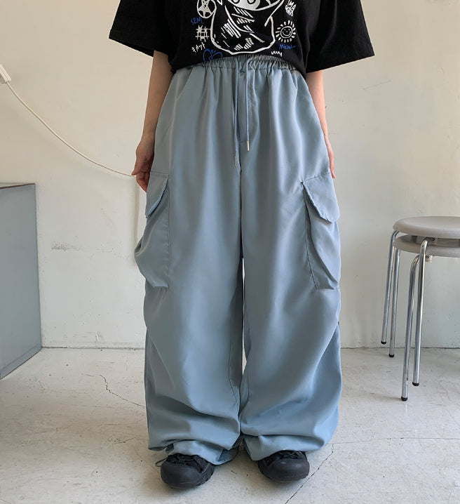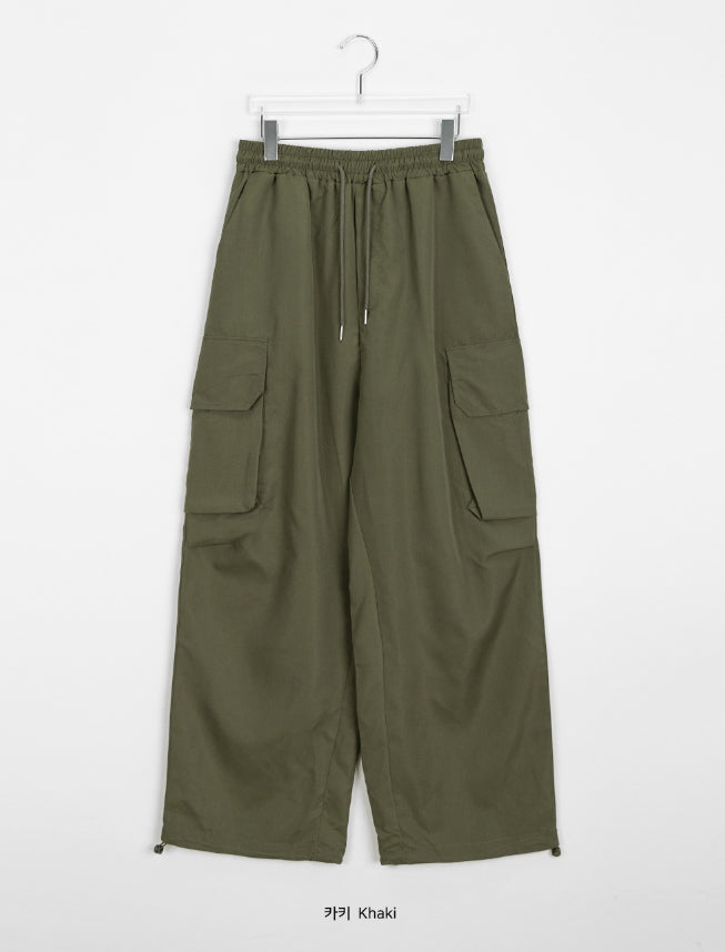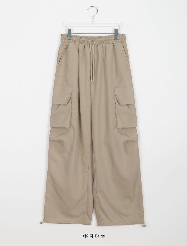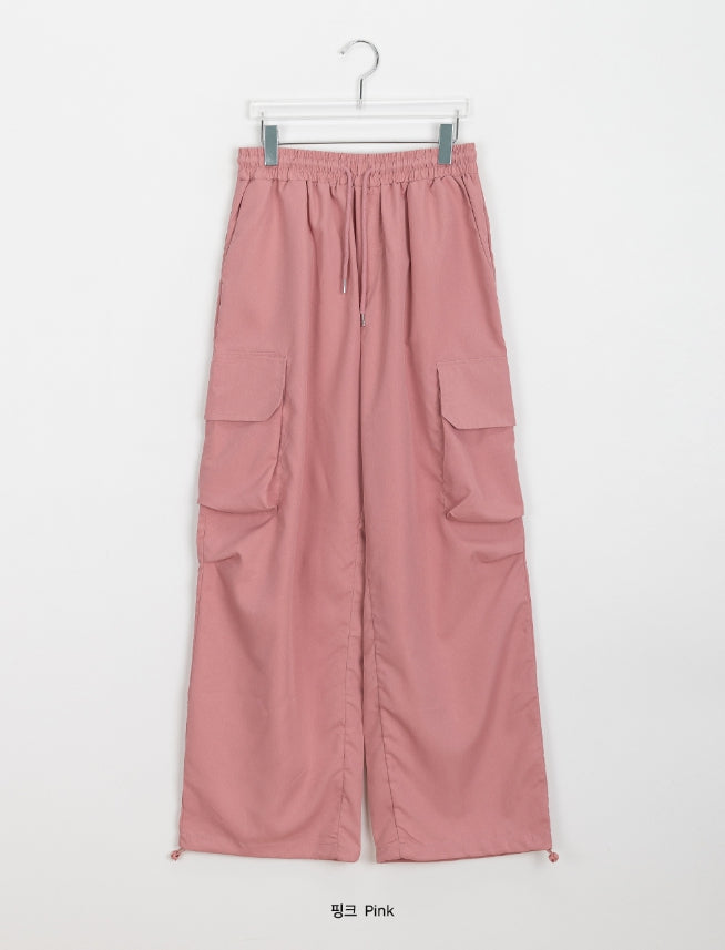 [男女兼用]ポロカラーバンディングストリングカーゴパンツ