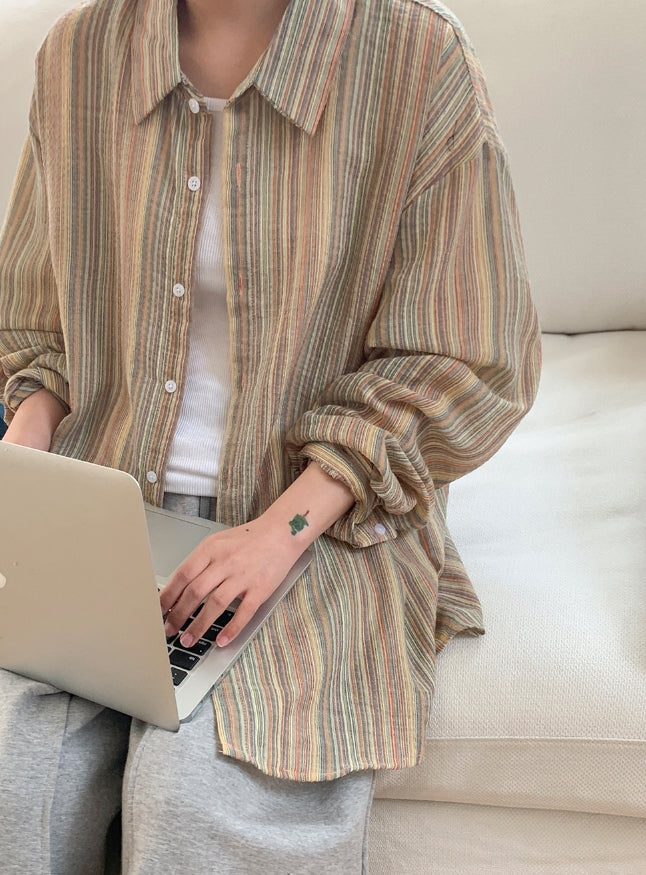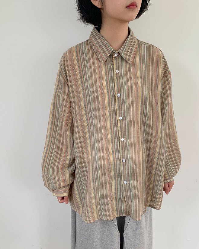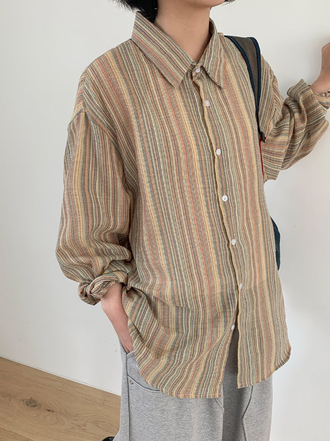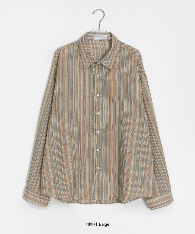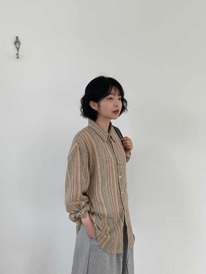 [unisex] Pweep Vintage Stripe Over Linen Shirt