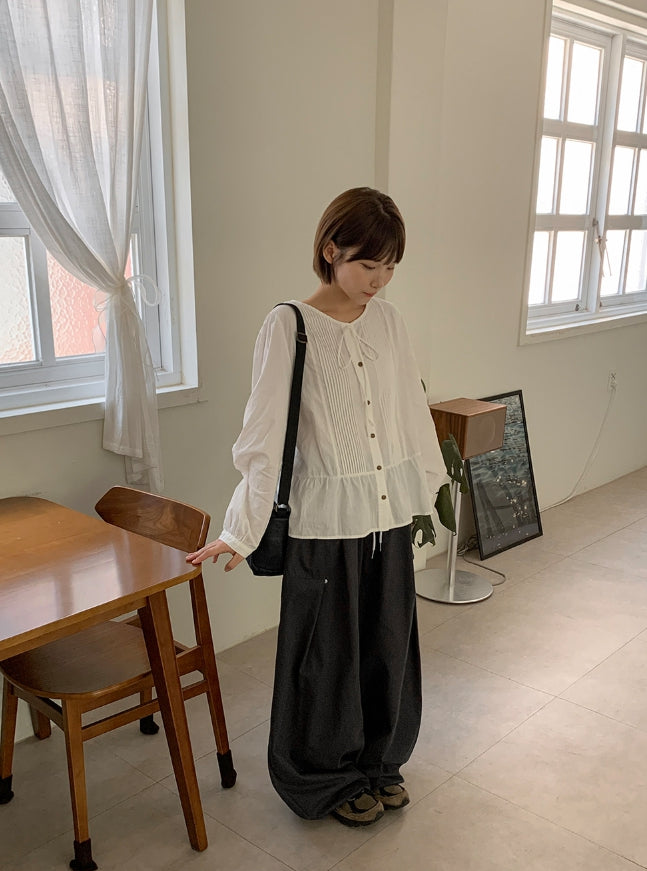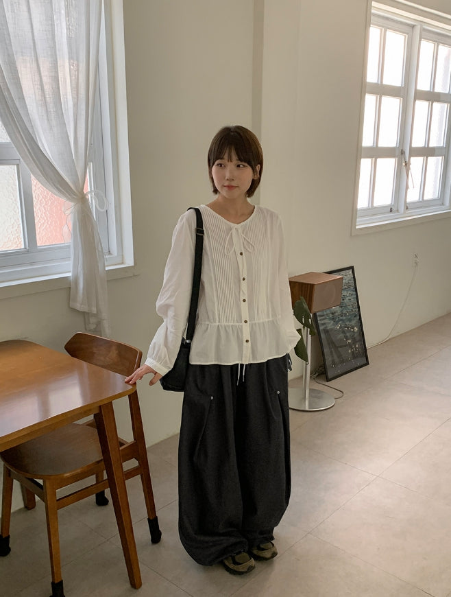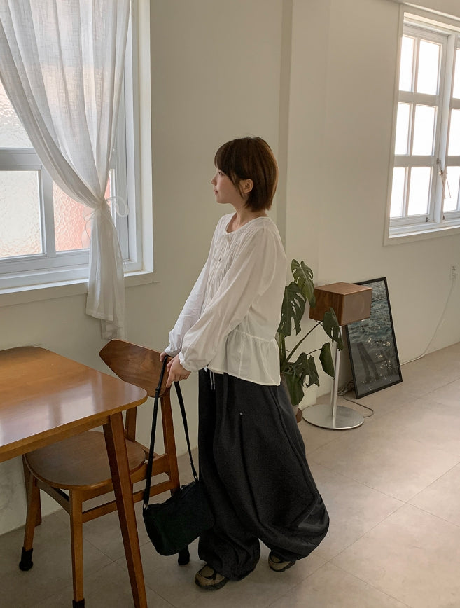 [unisex] Ridello Pintuck Rivet Banding Wide Pants