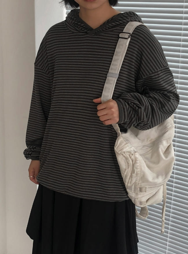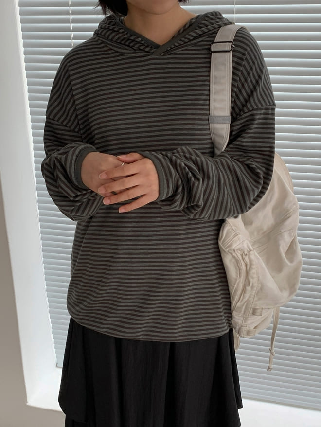 [Unisex] Shinneko Stripe Hood Long Sleeve Tee