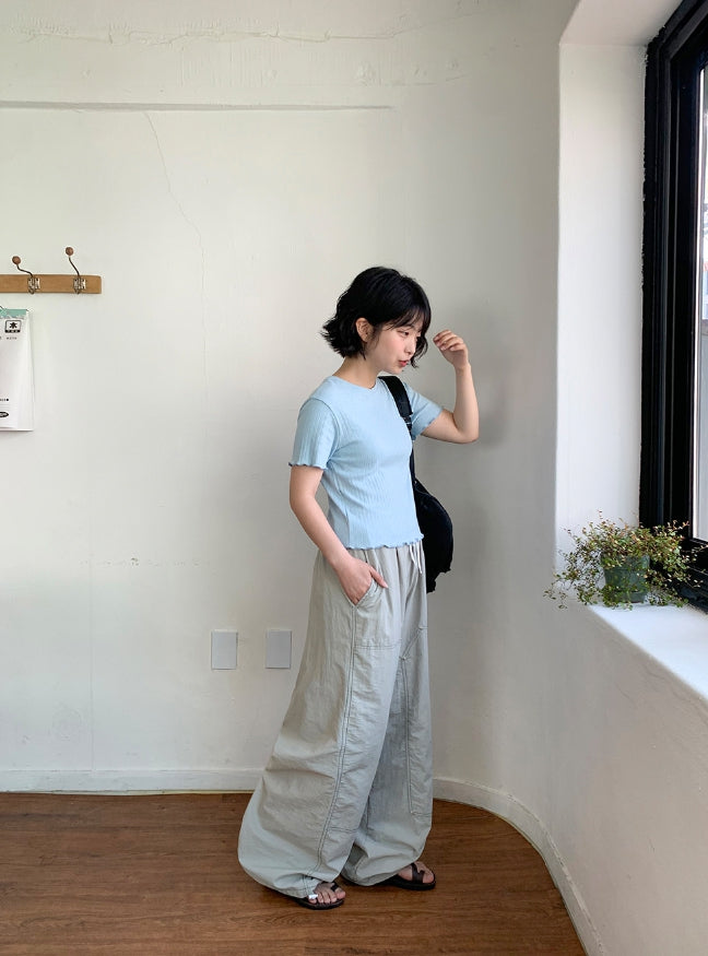 [男女兼用]シオールリベットバンディングナイロンワイドパンツ