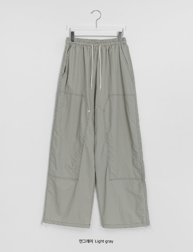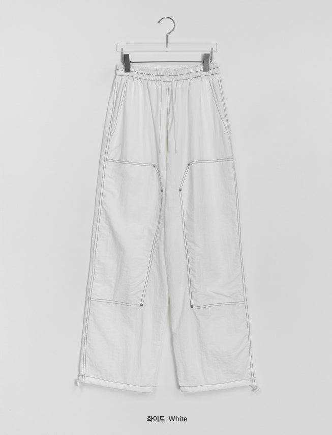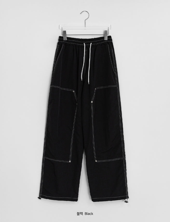[unisex] Shiol Rivet Banding Nylon Wide Pants