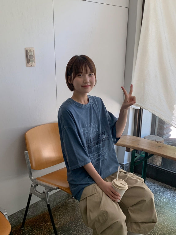 [男女兼用]シンテピグメントプリンティングオーバー半袖Tシャツ