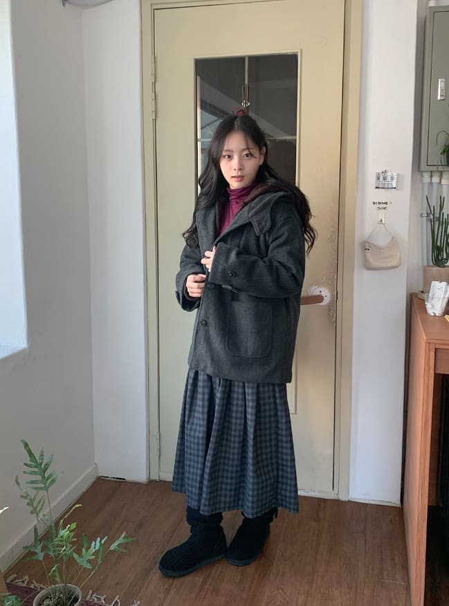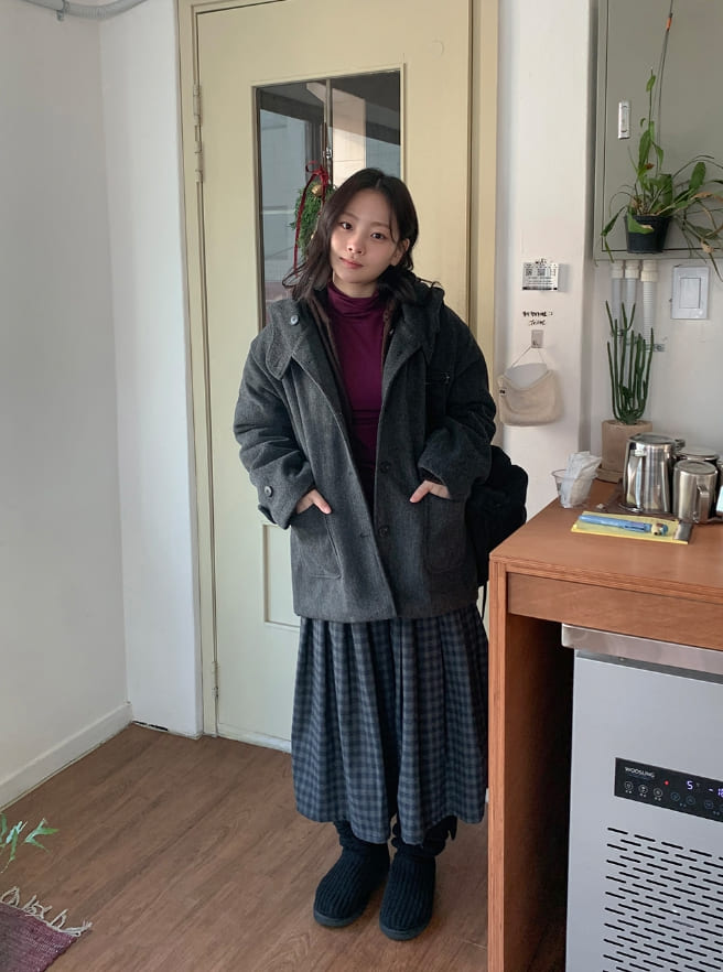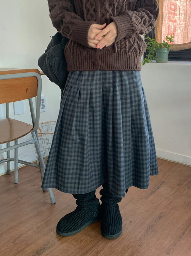 Gatell Peach Fuzz Banding Check Long Skirt