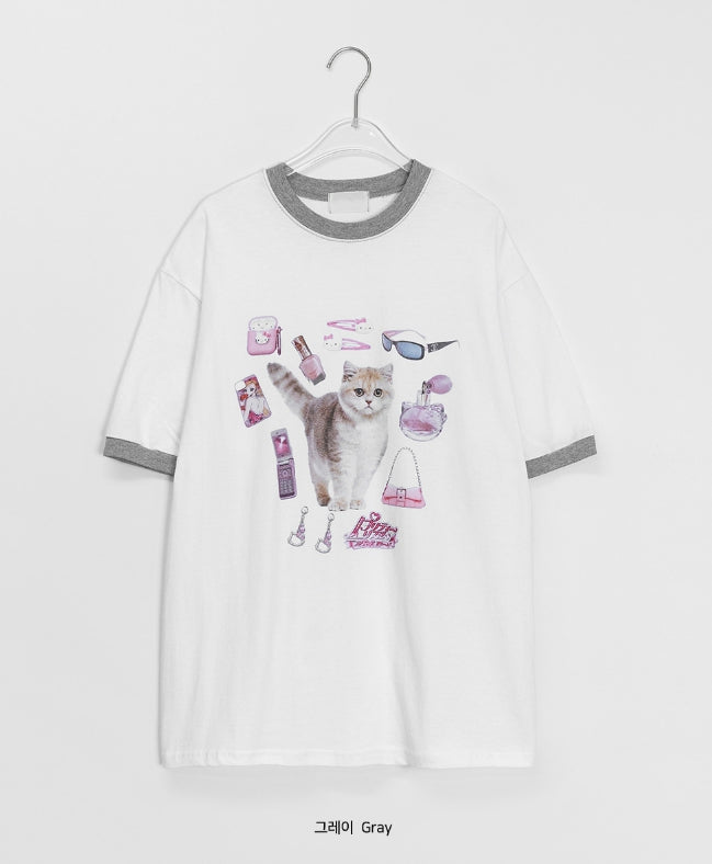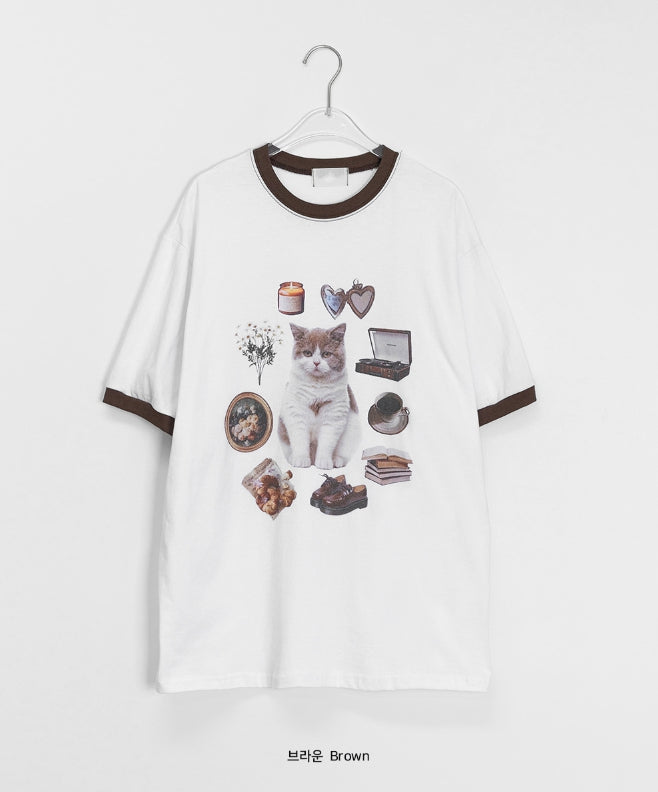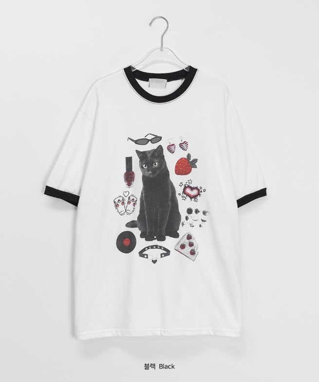 [unisex] Sosense Cat Print Color Matching Over Short Sleeve Tee
