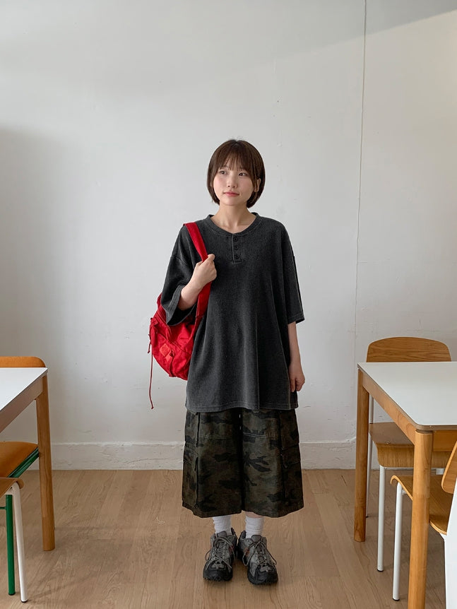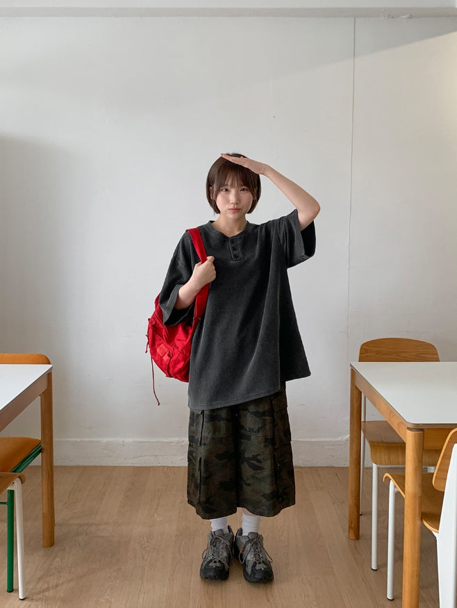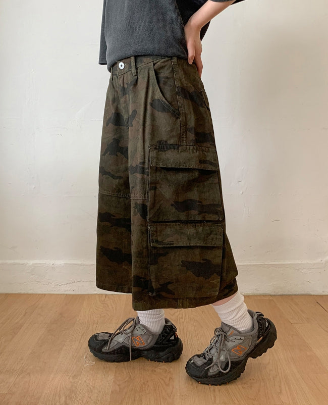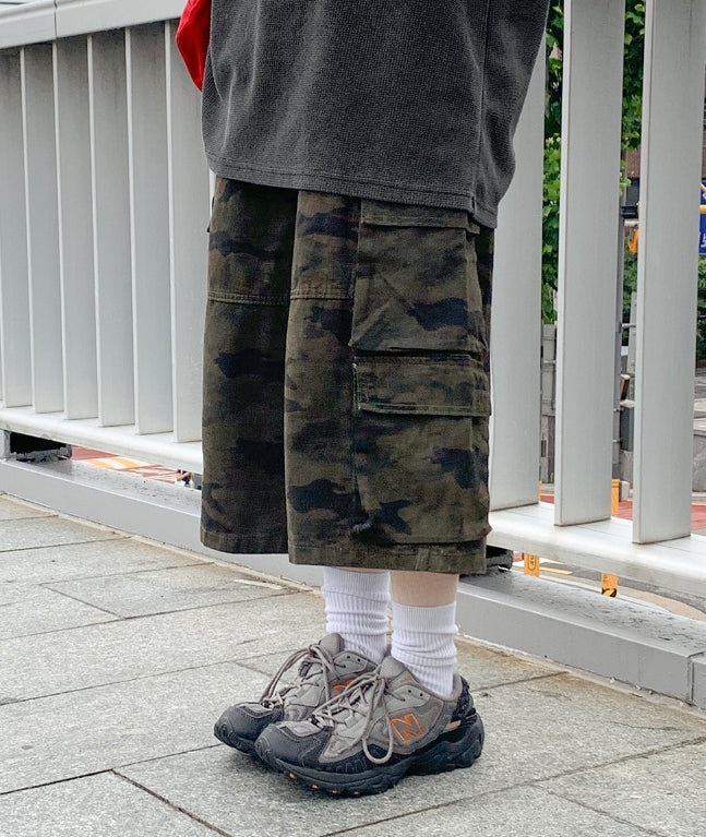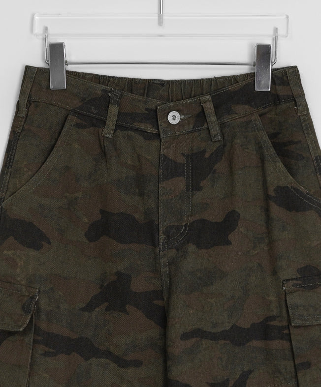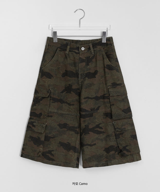 [unisex] Steel Camo Cargo Banding Bermuda Pants