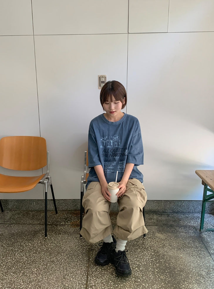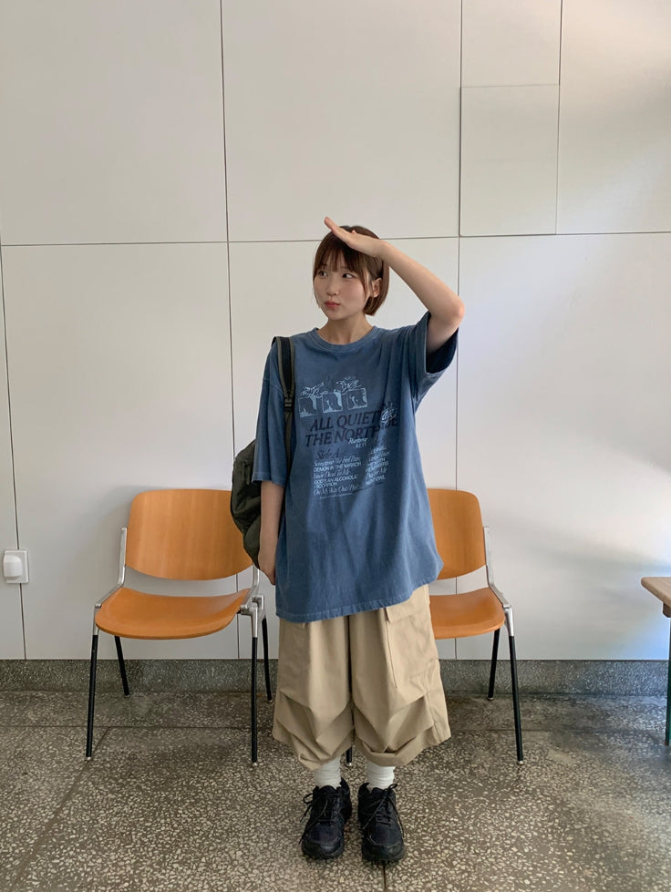 -ONE SIZE (ウエスト(ゴム)67-83 ヒップ107 股上37 股下33.5 もも周り74 裾周り73 総丈70.5)