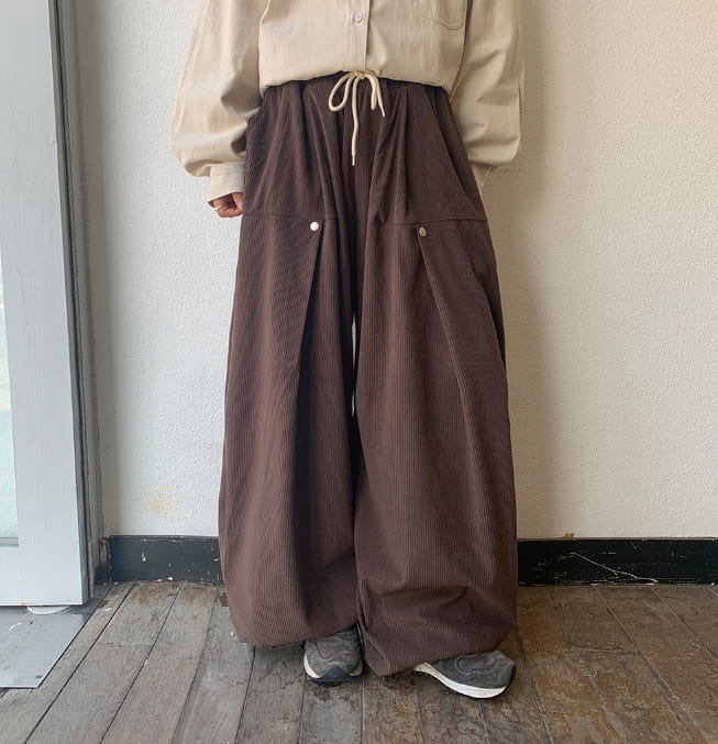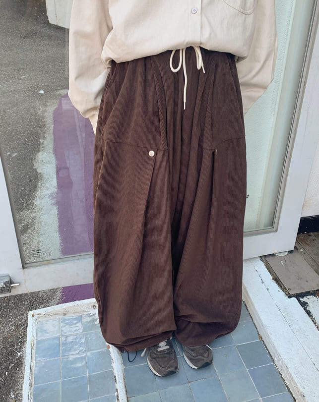[男女兼用]タントディンコーデュロイリベットバルーンワイドパンツ
