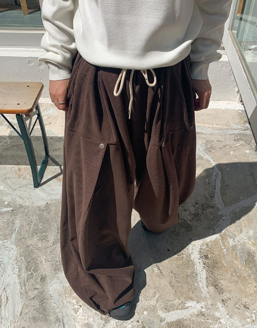 [Unisex] Turnedin Corduroy Rivet Balloon Wide Pants