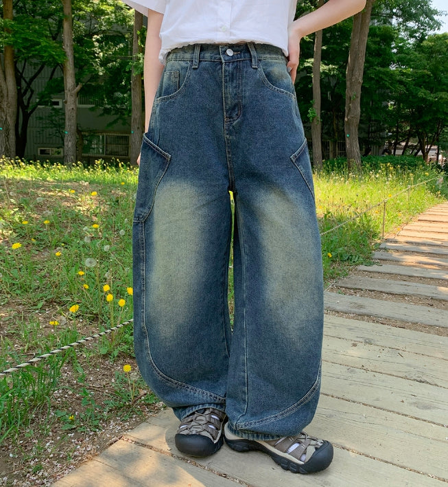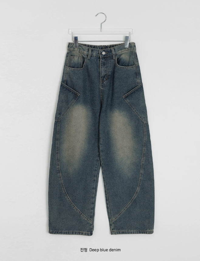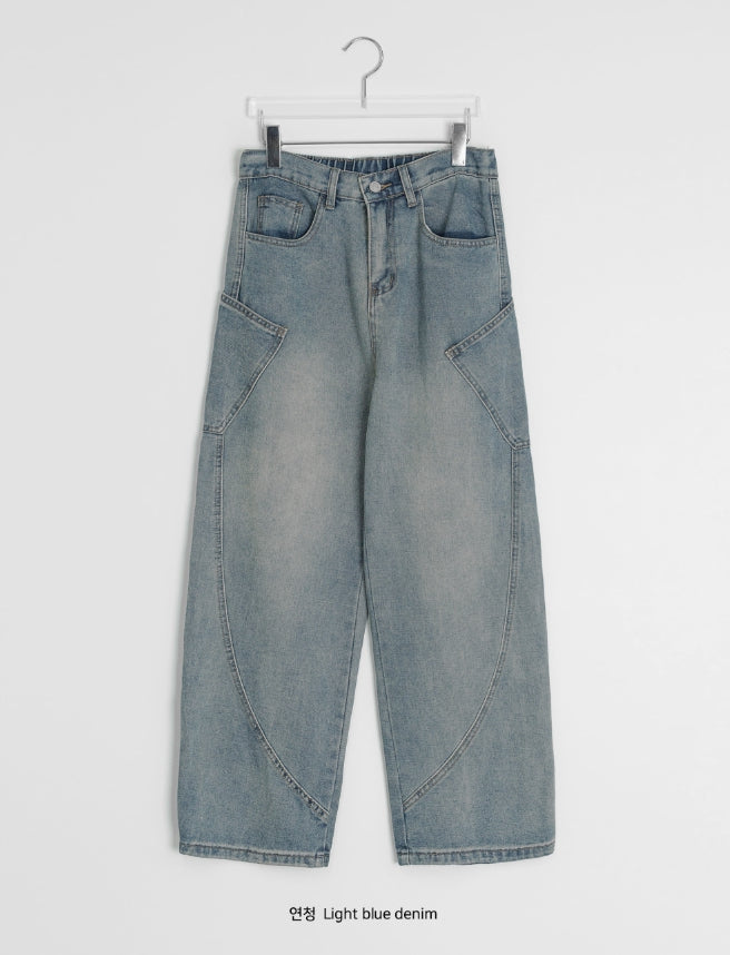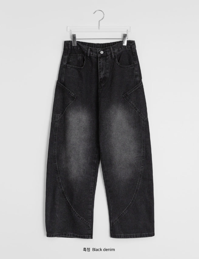[unisex] Viewo Curved Denim Cargo Wide Pants