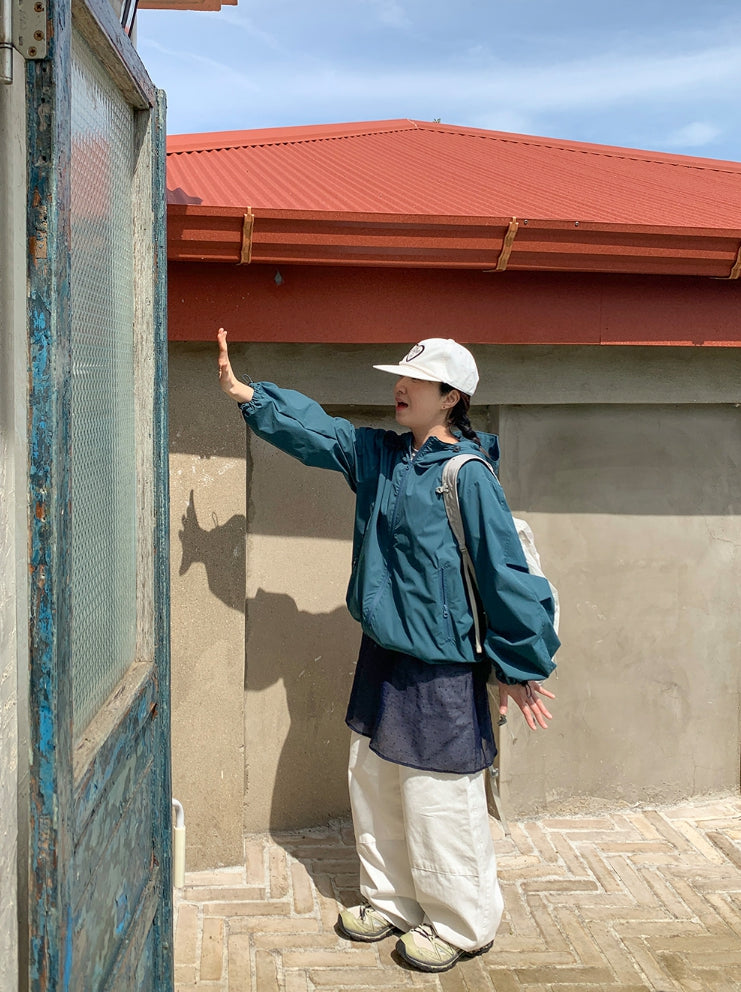 [男女兼用]ビンクツーウェイストリングフードピンタックウィンドジャケット