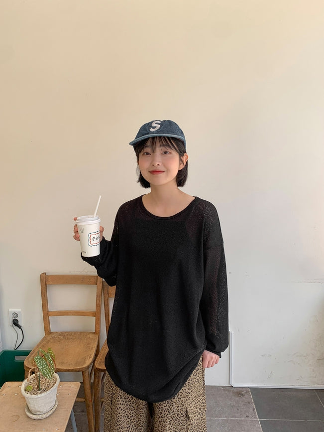 [男女兼用]ワイルドカラーリネンオーバー長袖Tシャツ