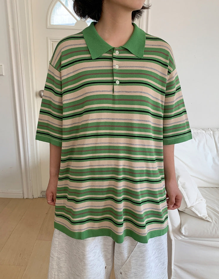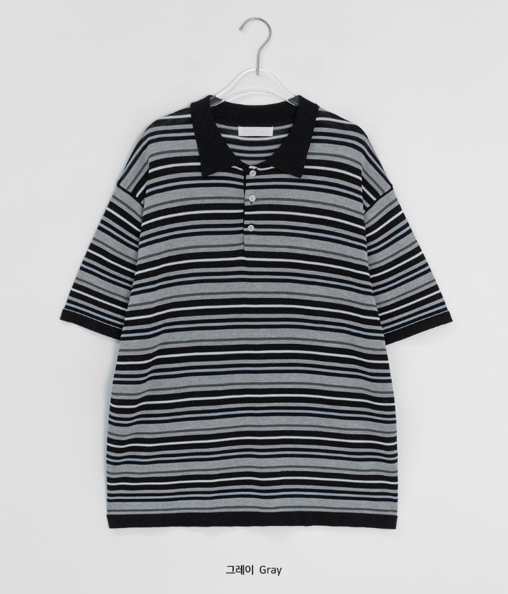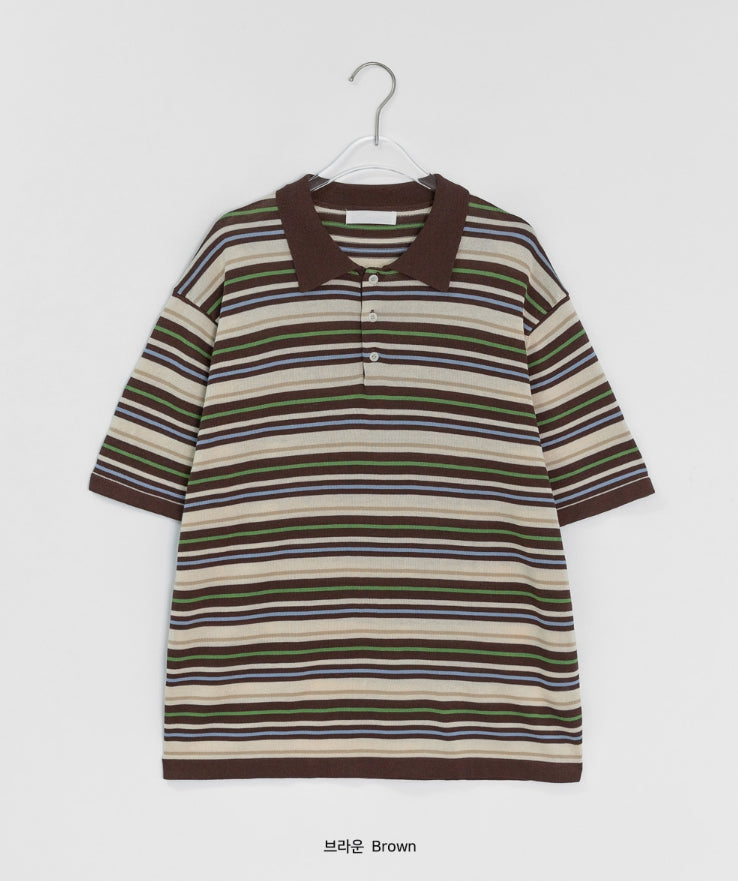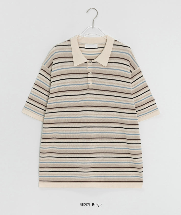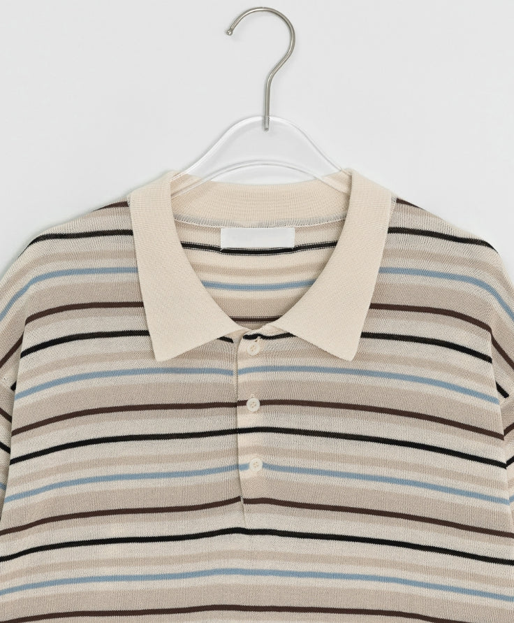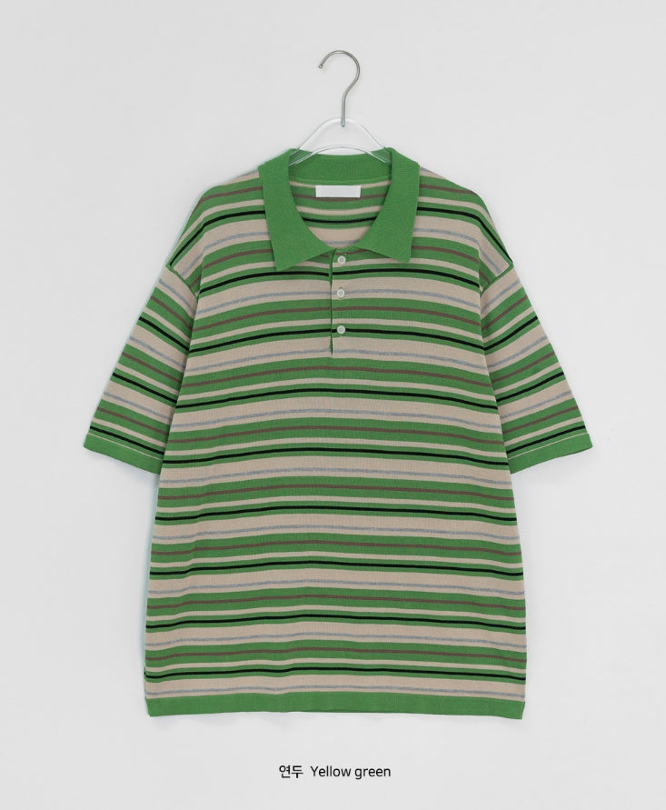 [Unisex] Yonder Color Stripe Collar Over Short Sleeve Knit