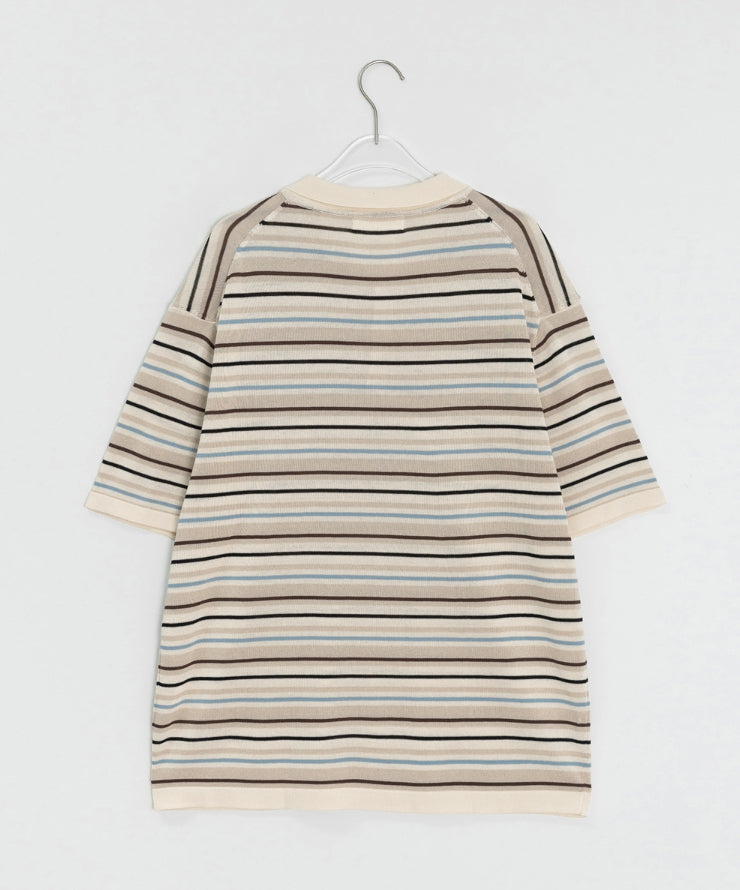 [男女兼用]ヨンデレボーダー襟付きオーバー半袖ニット
