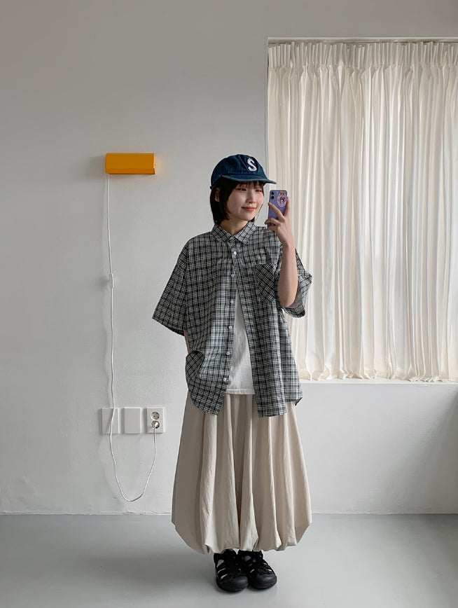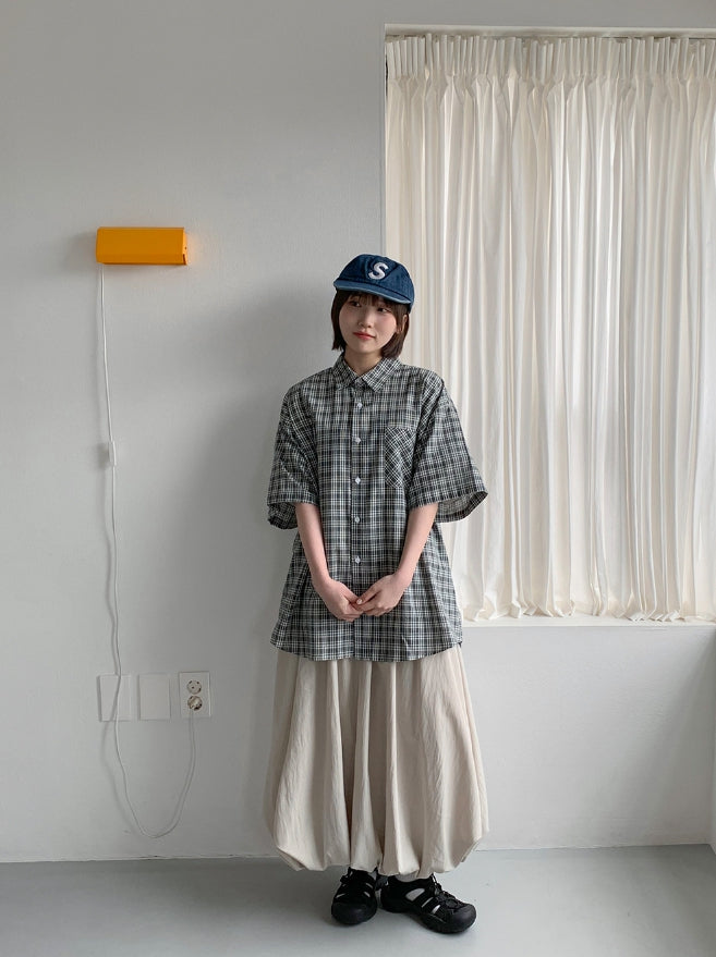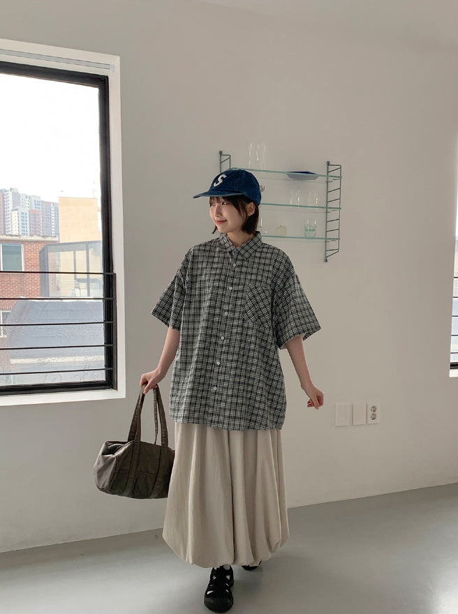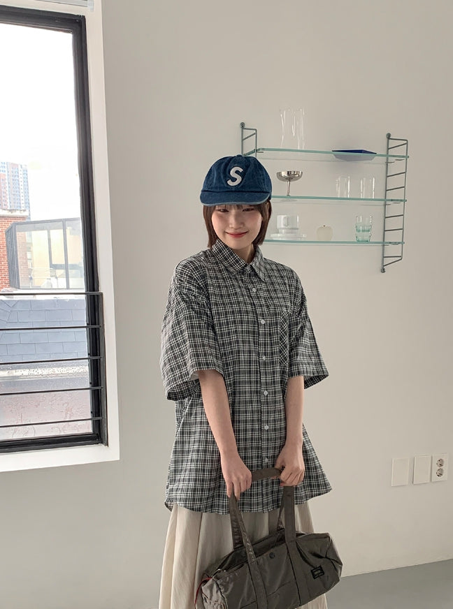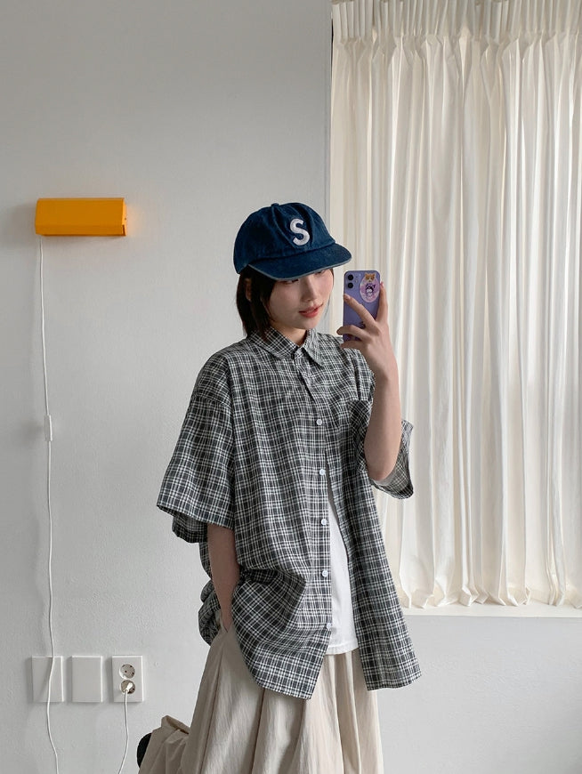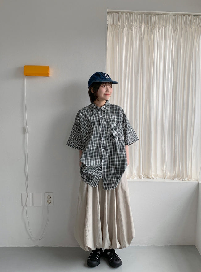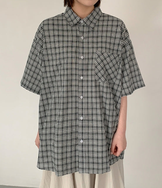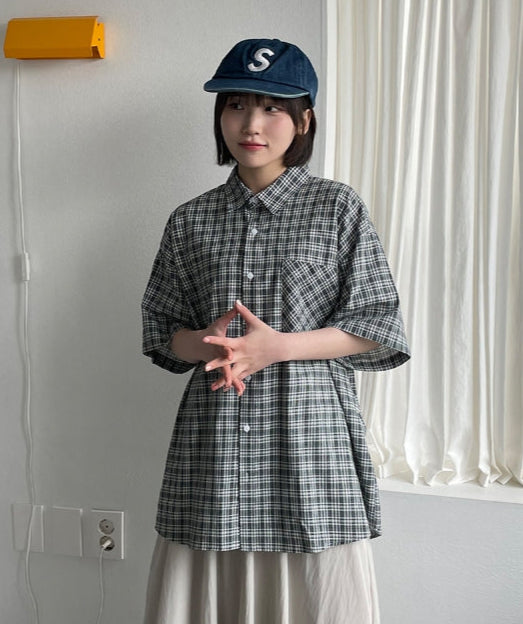 [unisex] Zindi Check Over Short Sleeve Shirt