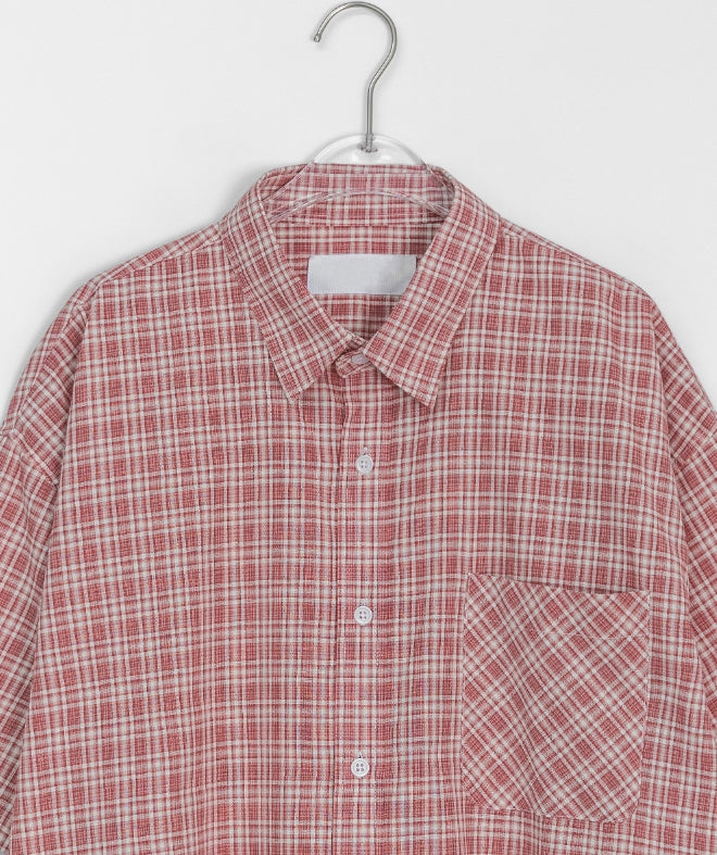 [男女兼用]ジンディチェックオーバー半袖シャツ