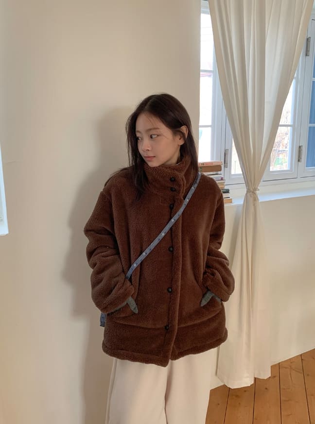 Vilkans High Neck Wool Half Coat