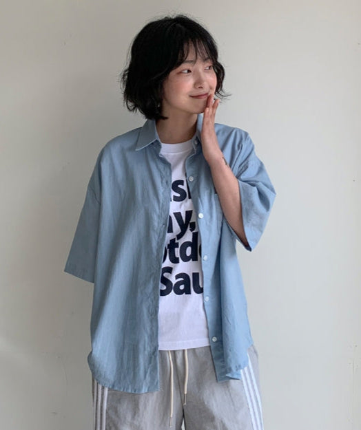 ユーデルベーシックリネン半袖シャツ