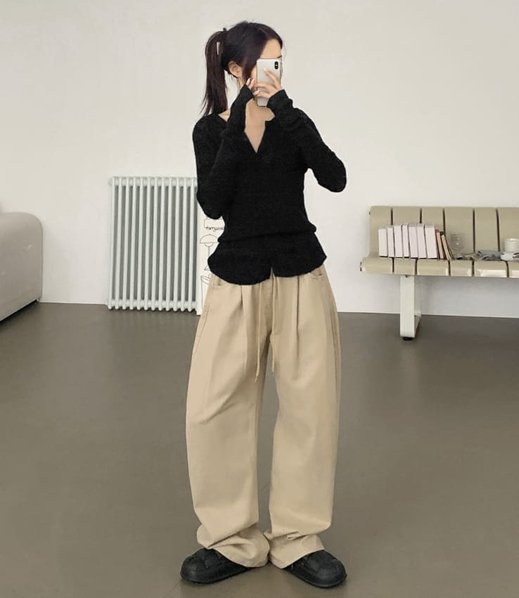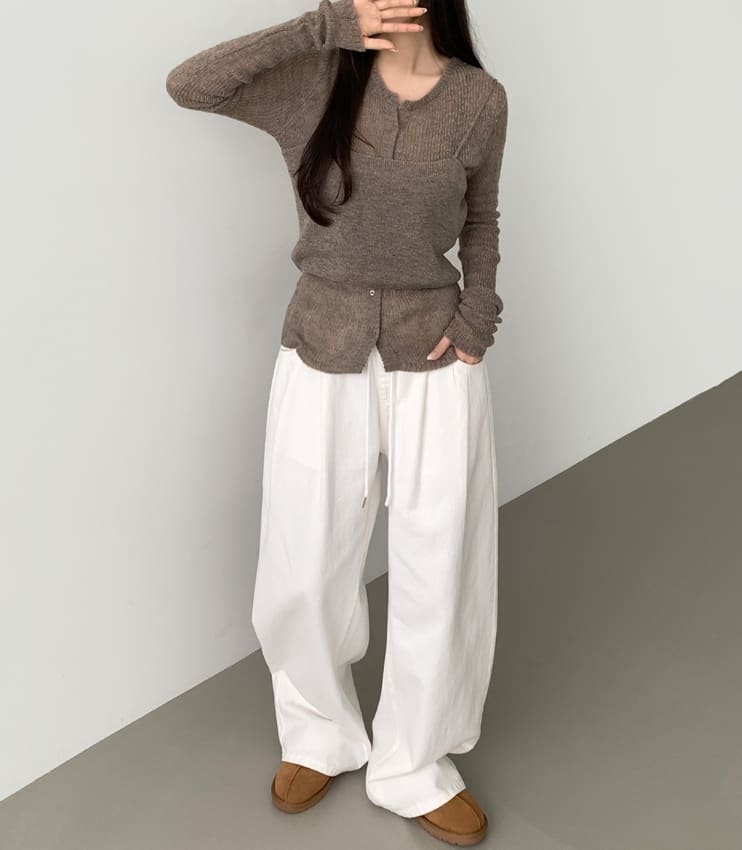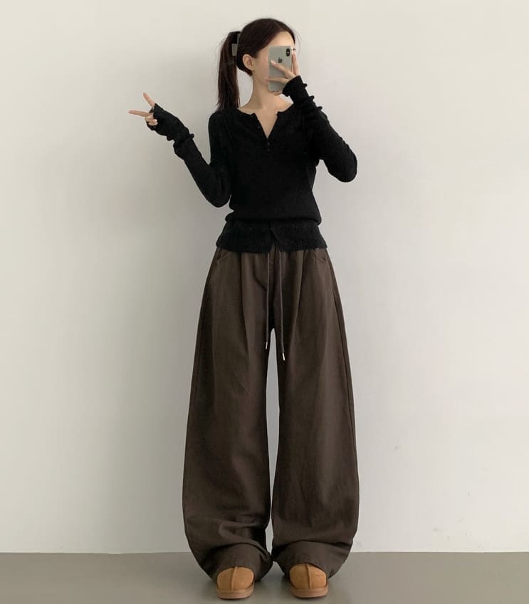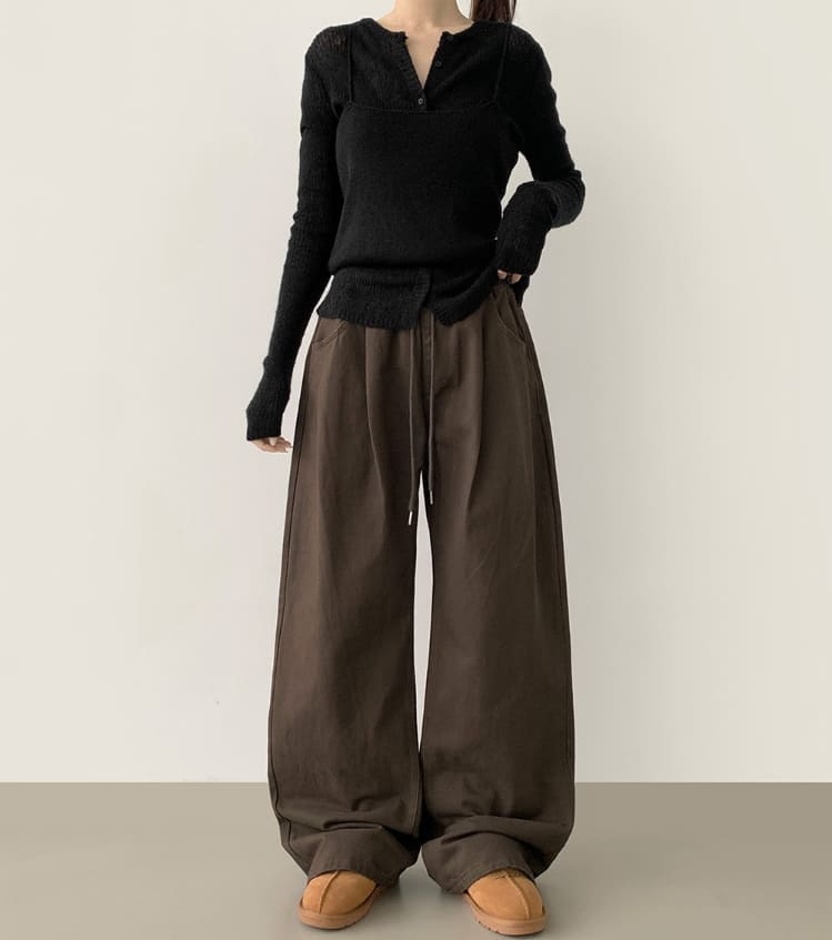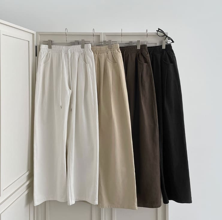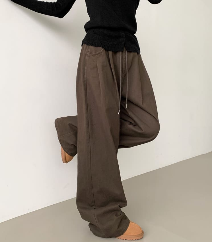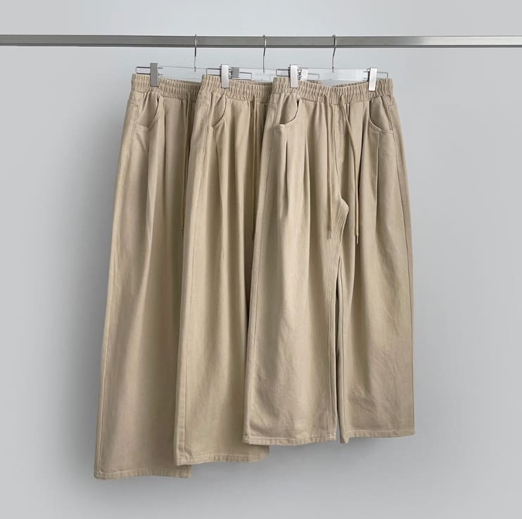 Autumn Peach Processed Pintuck Loose Wide Fit Banding Cotton Pants