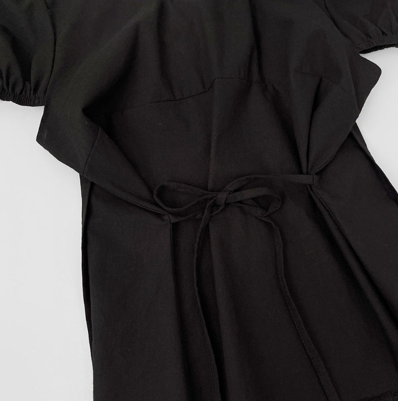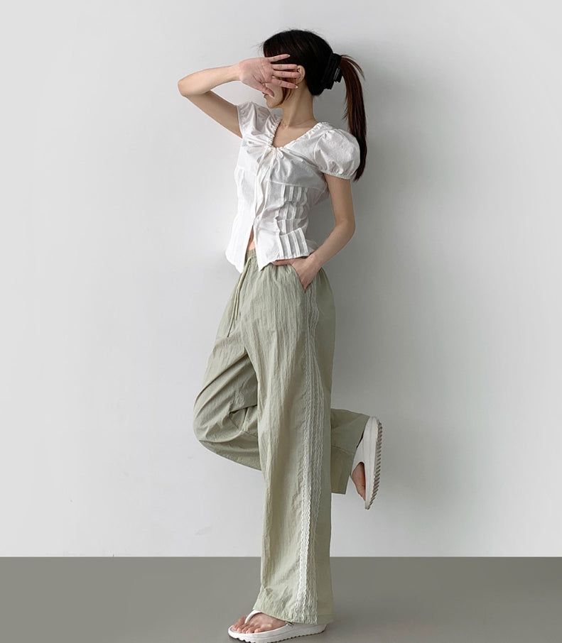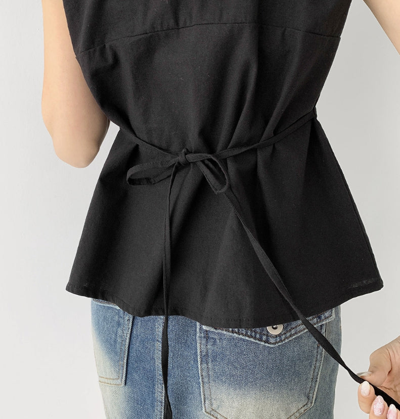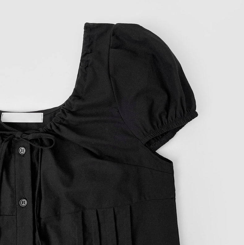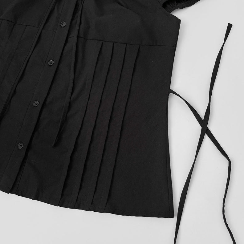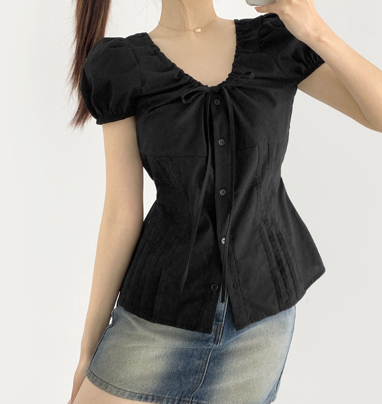 Balloon Soft Fit Ribbon Strap Short Sleeve Blouse