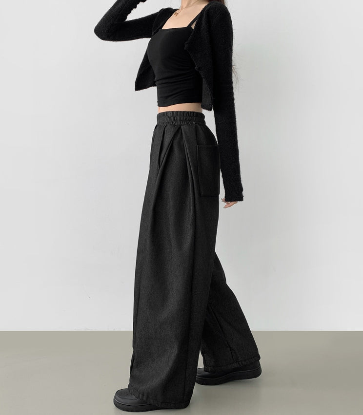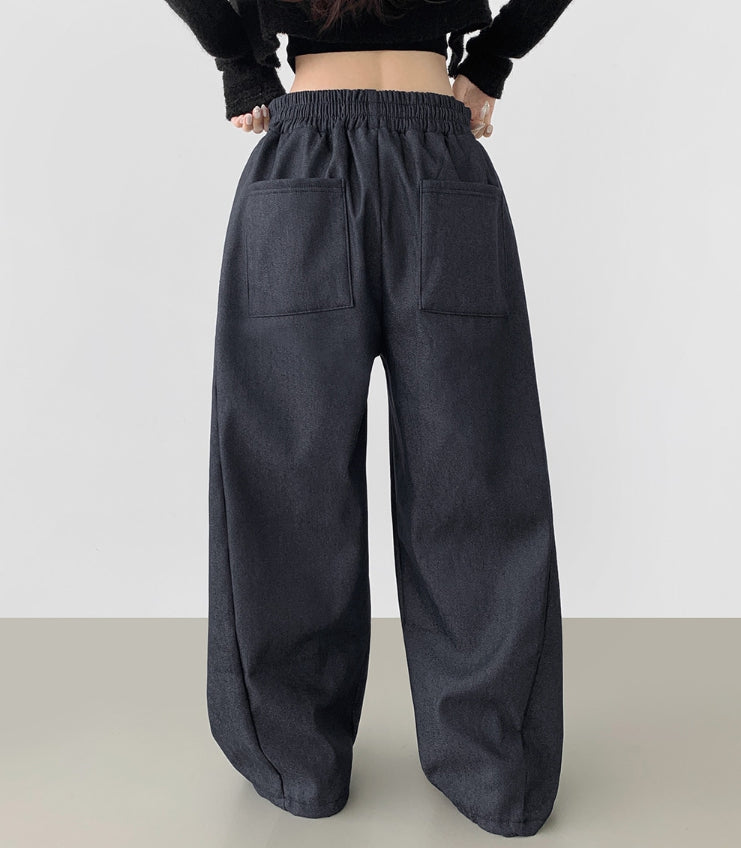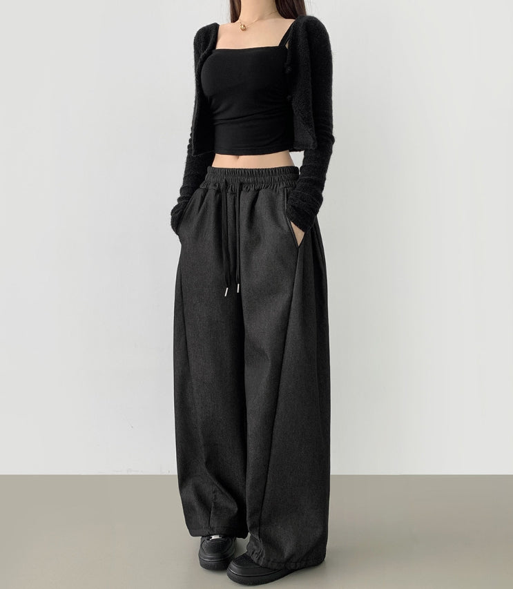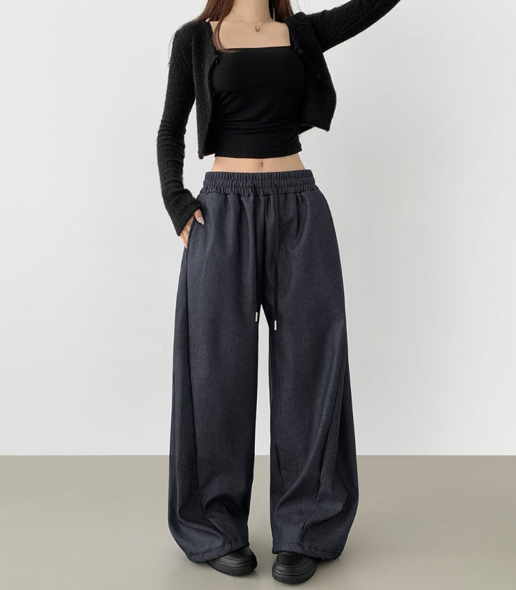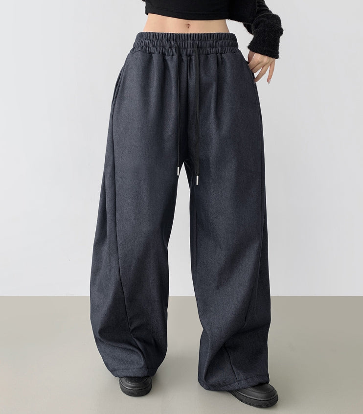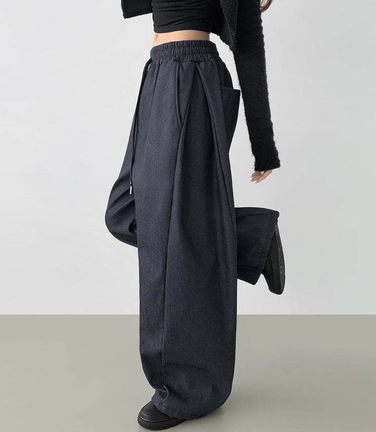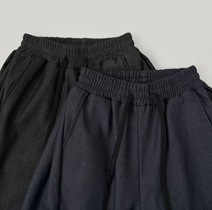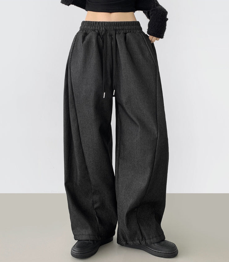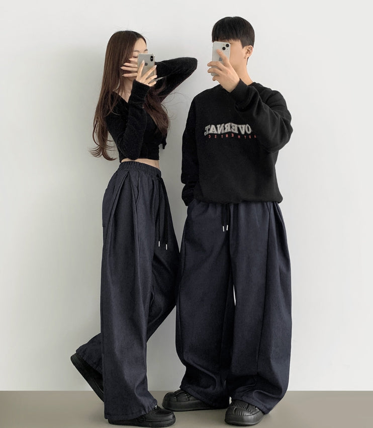 [カップルSIZE、起毛、色移りX/生地ピンタック]バルーンツーウェイ生サイド折りたたみピンタックバンディングメガデニムパンツ