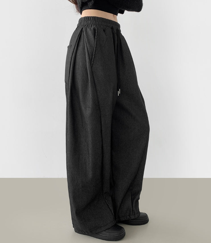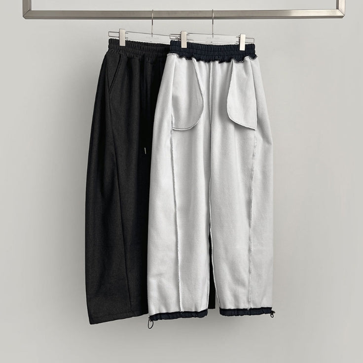 Balloon Two-Way Raw Side Folding Pin Tuck Banding Mega Denim Pants
