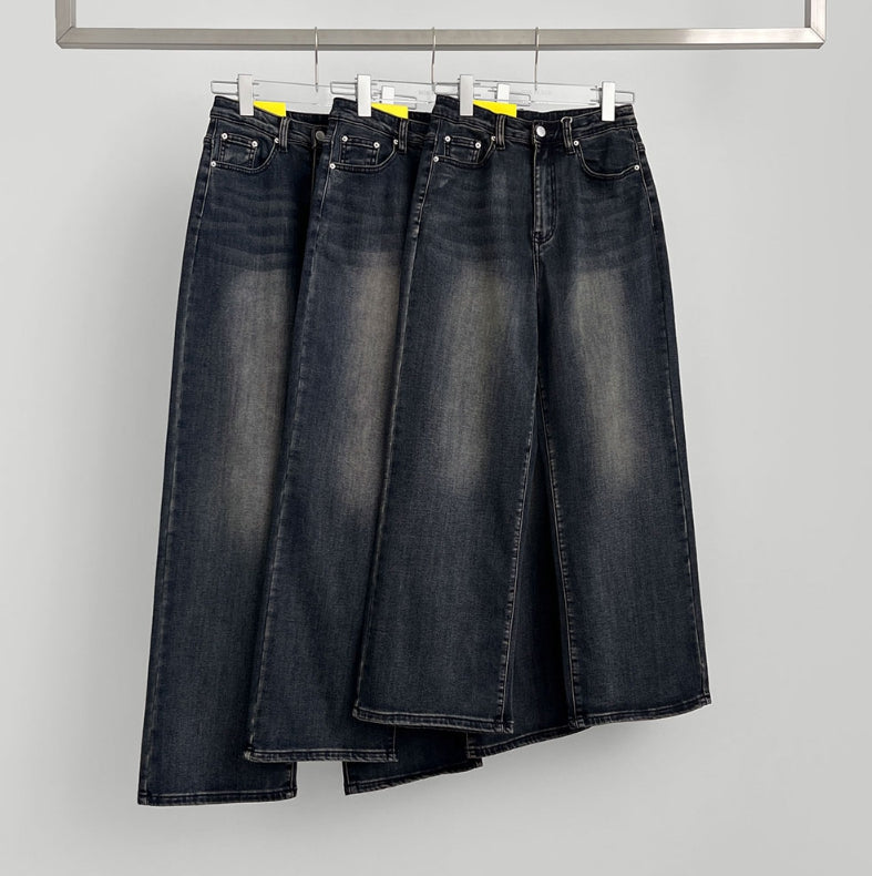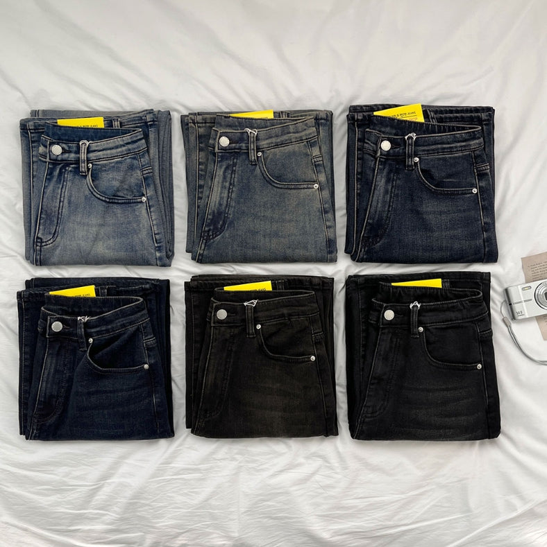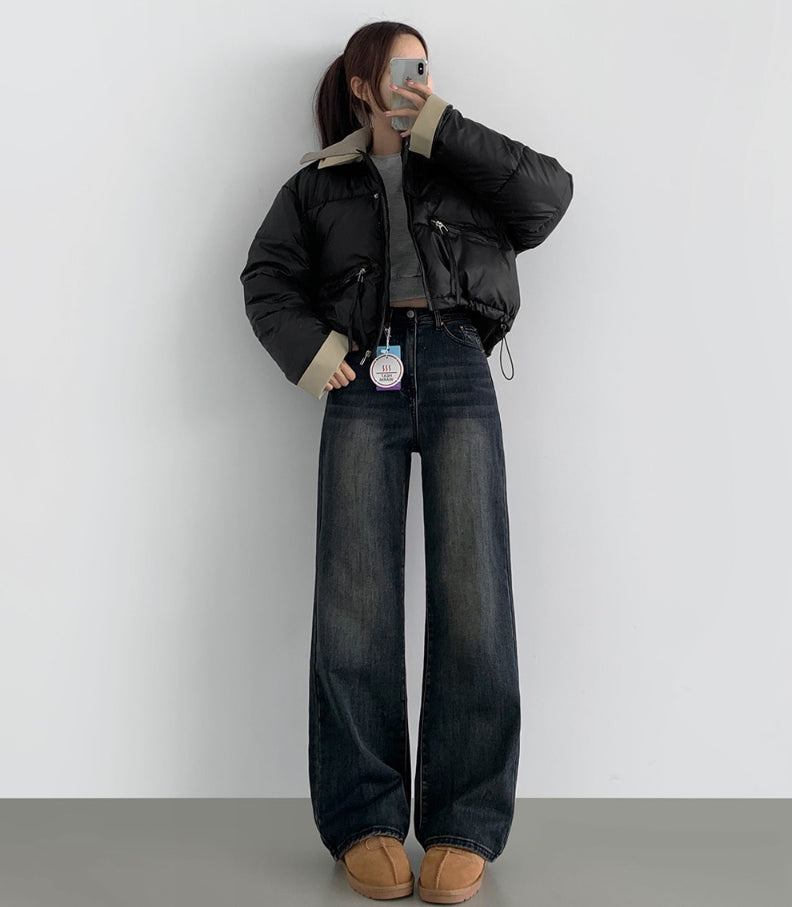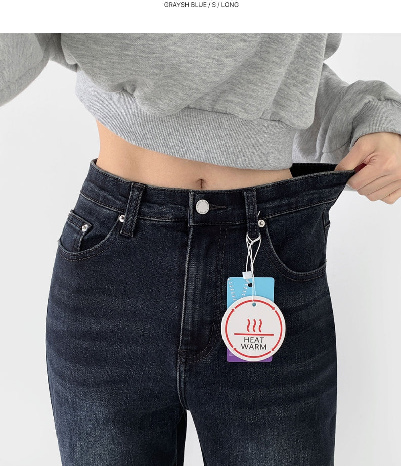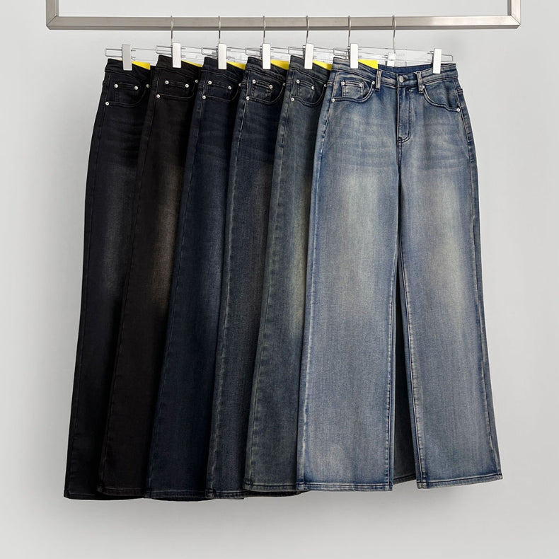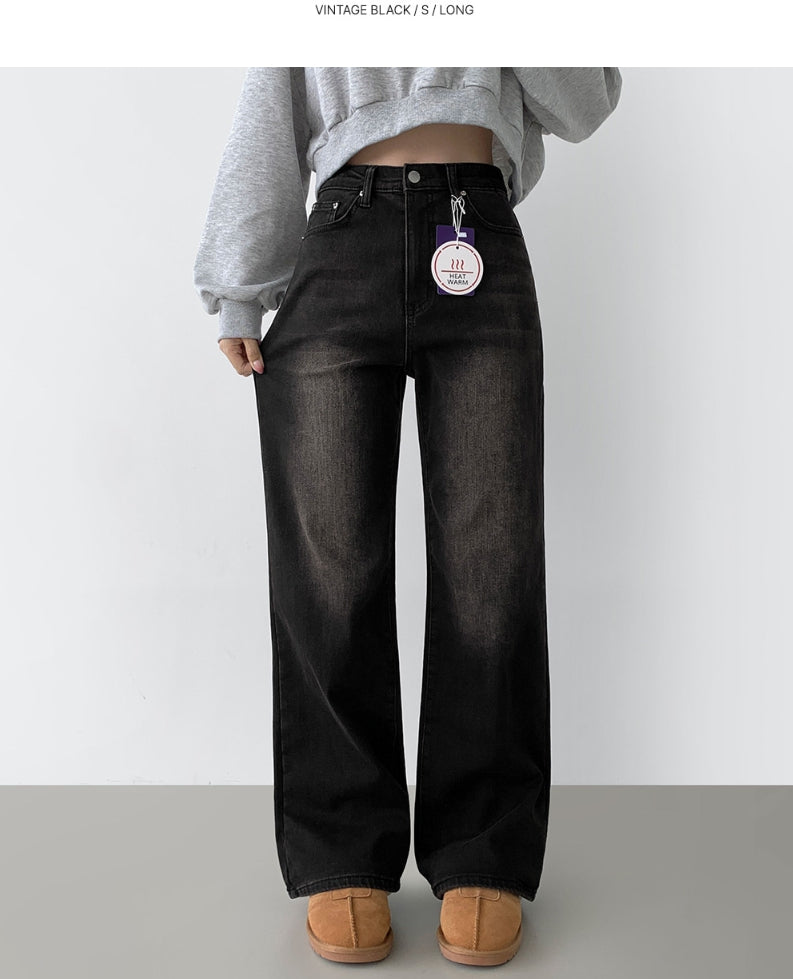 Basic Wide Fit Washing Banding Span Heated Fabric Brushed Denim Pants