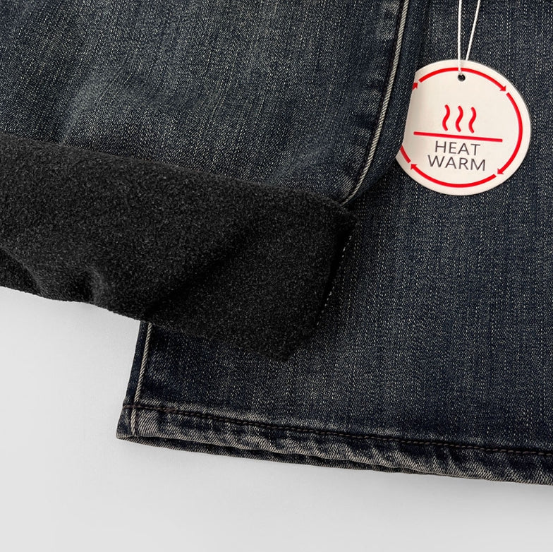 ベーシックワイドフィットウォッシュ加工バンディングスパンヒートファブリック裏起毛デニムパンツ