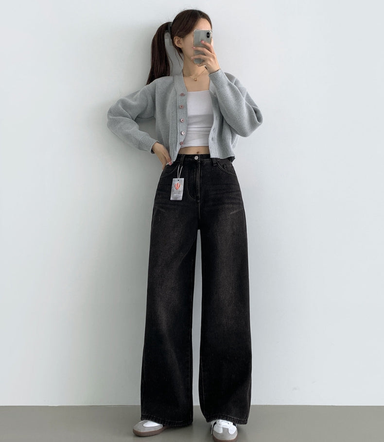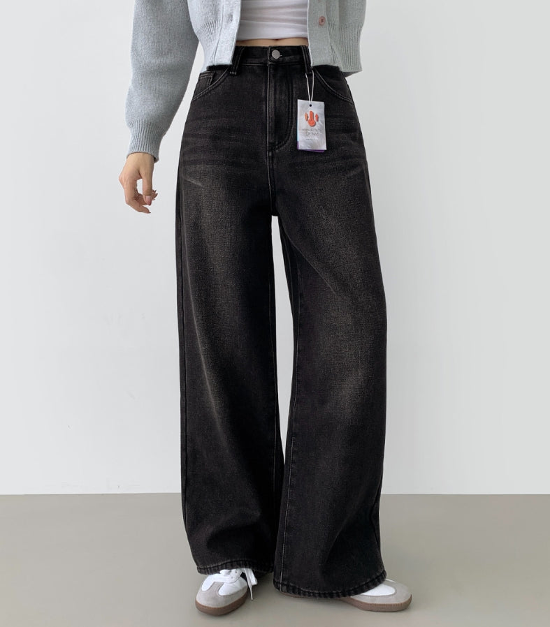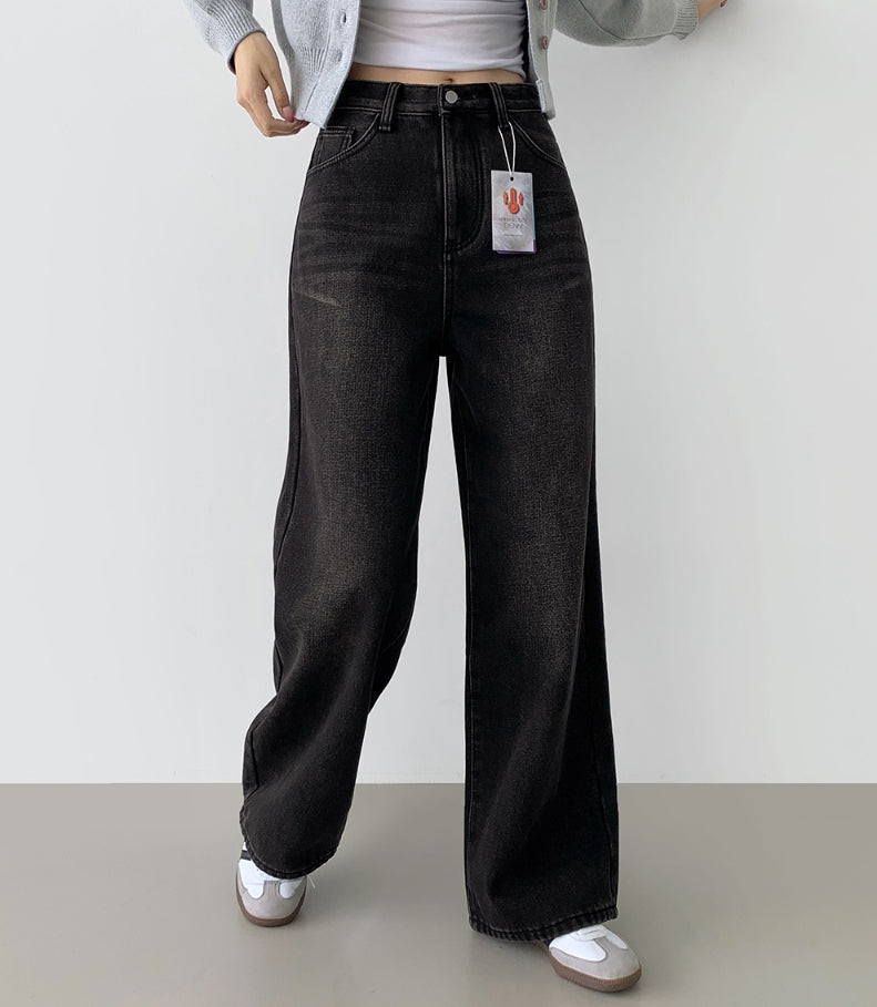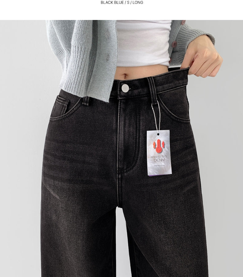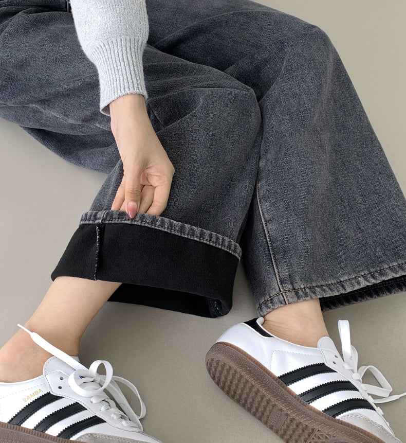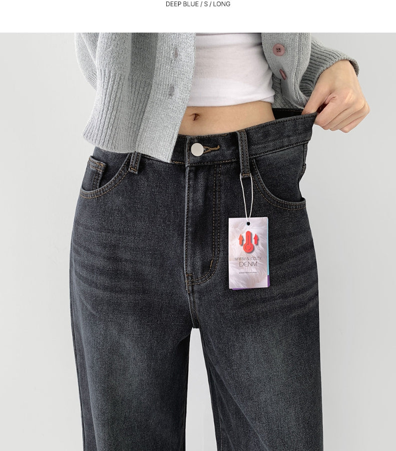 ボンディング裏起毛ワイドフィットバンディングデニムパンツ
