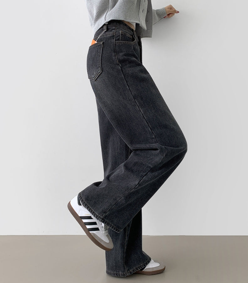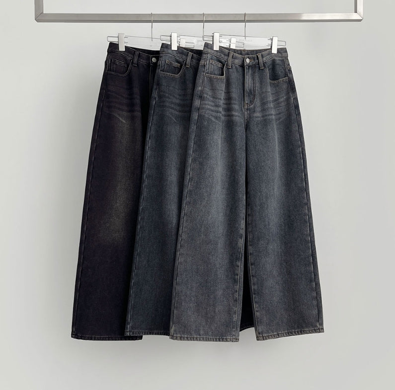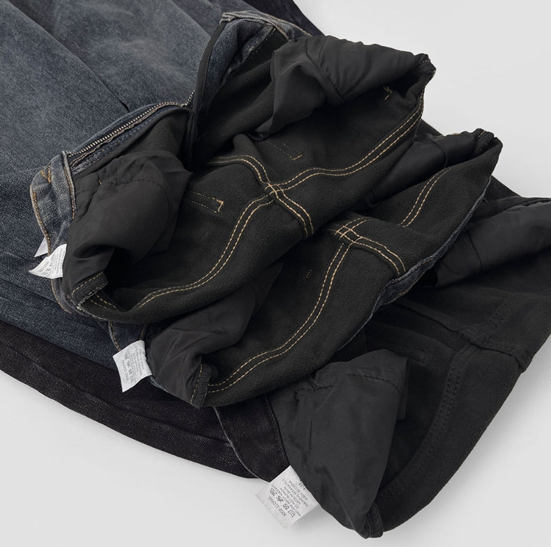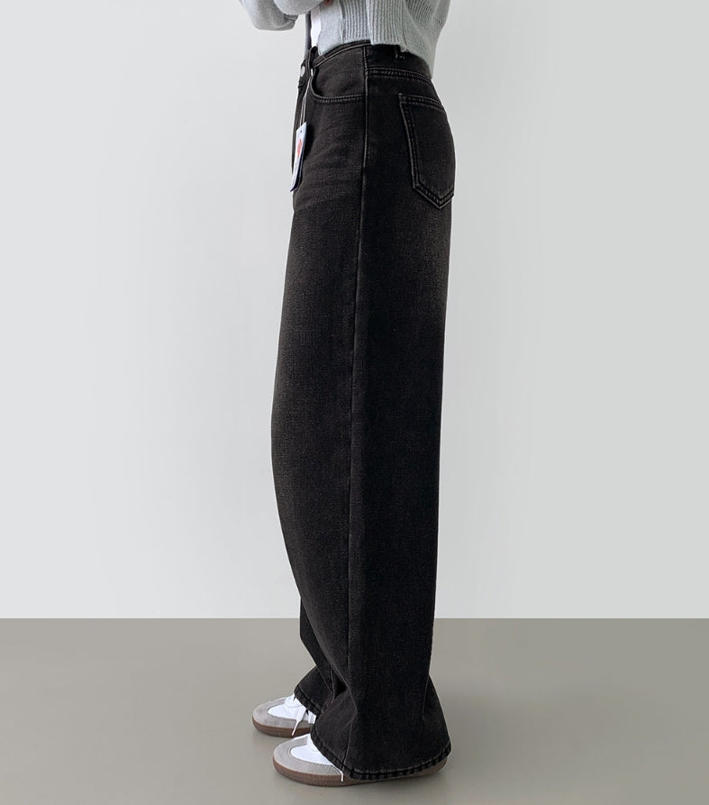 Bonding Brushed Wide Fit Banding Denim Pants