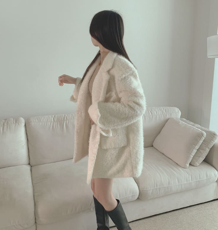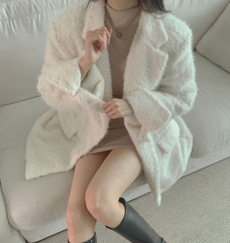 Boucle Quilting Lining Fur Shoulder Pad Winter Jacket