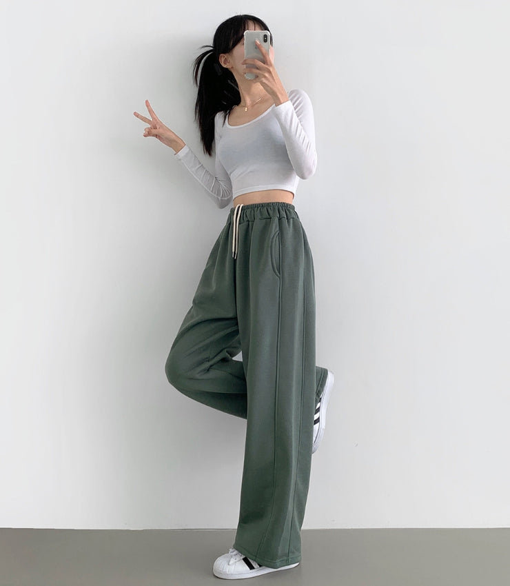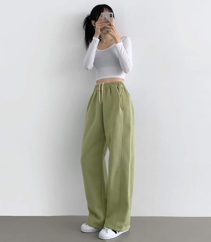 Brushed Bly Vivid Color Long Wide Banding Training Pants