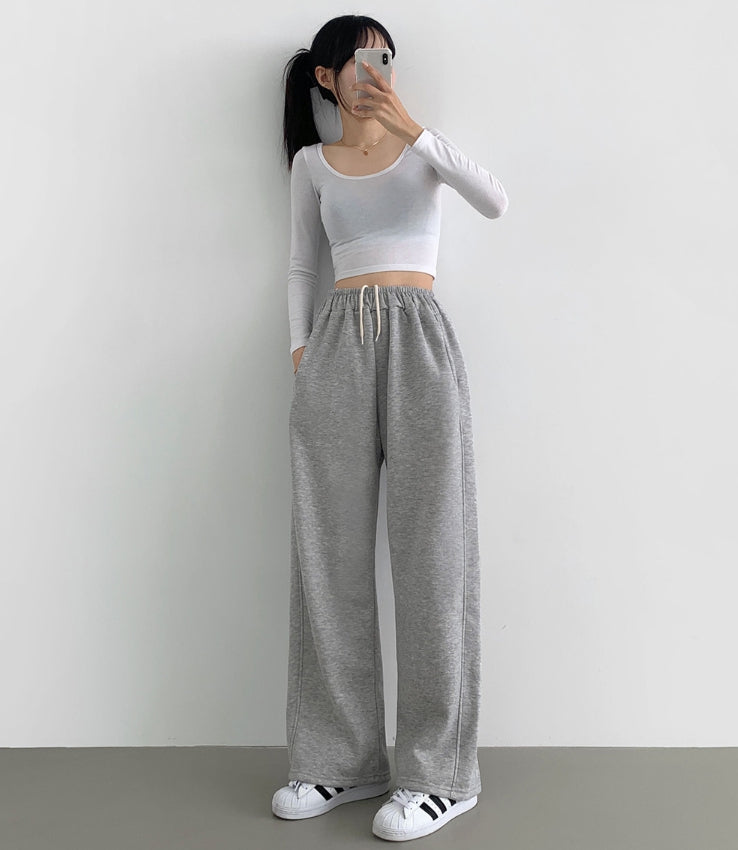 裏起毛ブリービビットカラーロングワイドバンディングトレーニングパンツ
