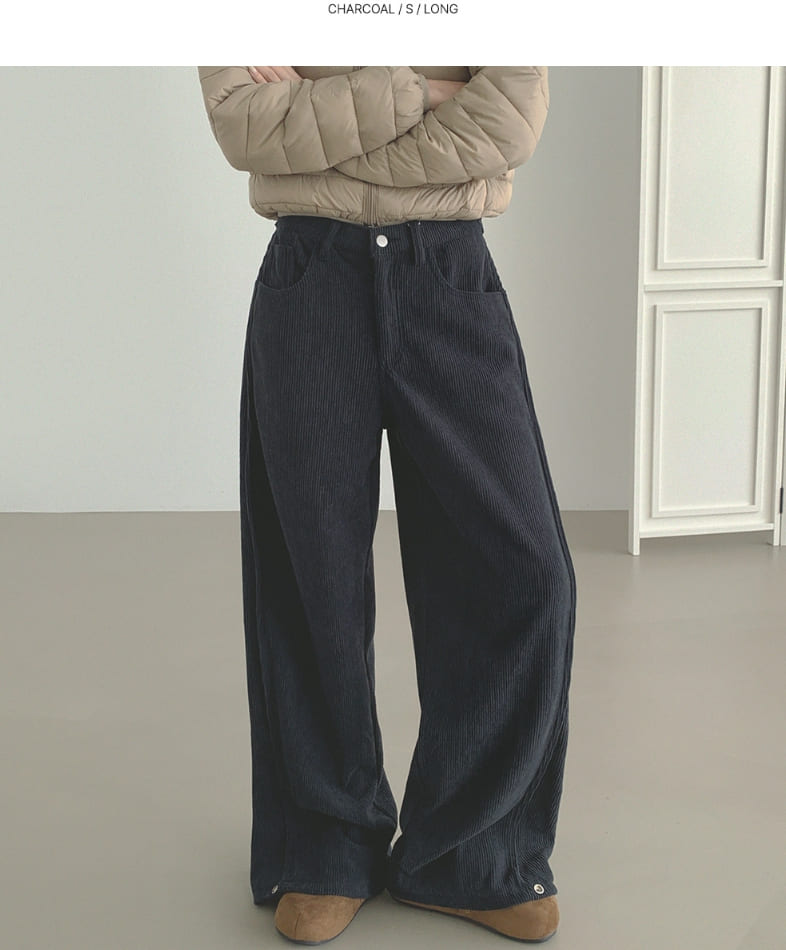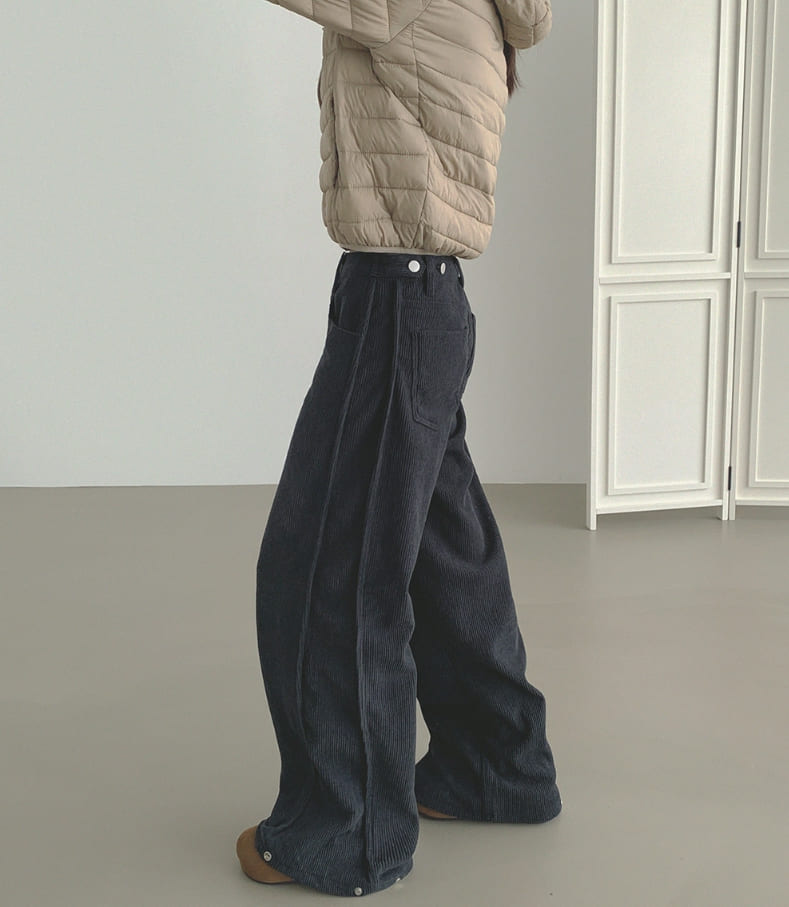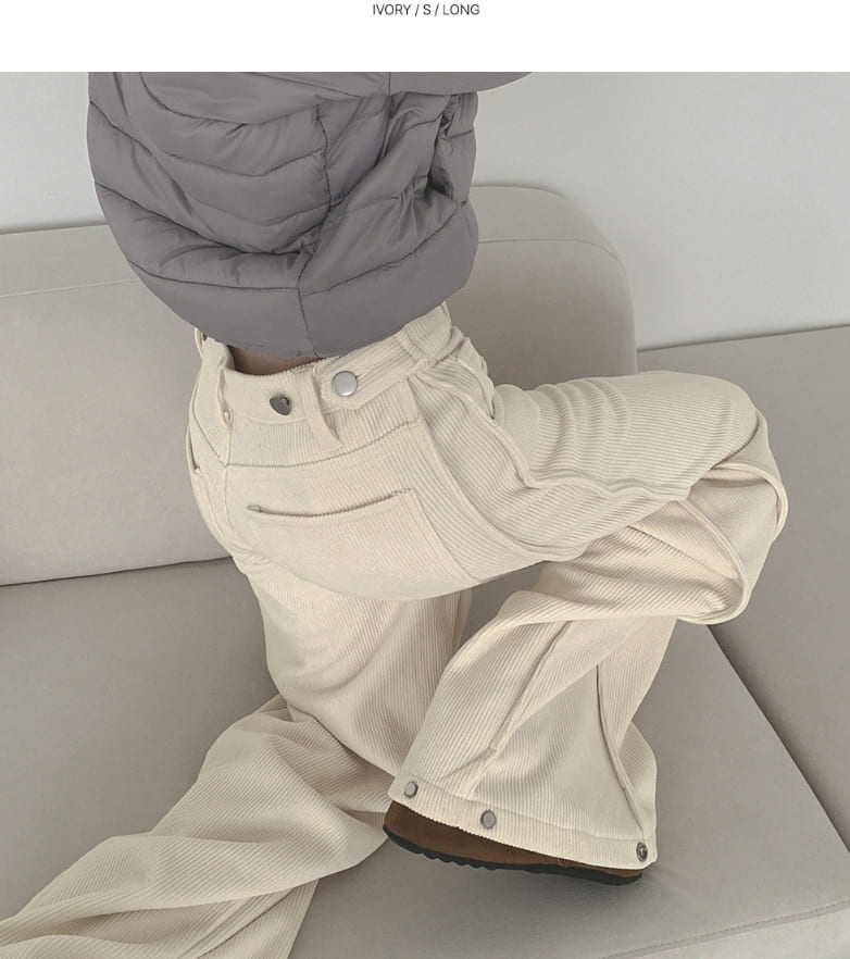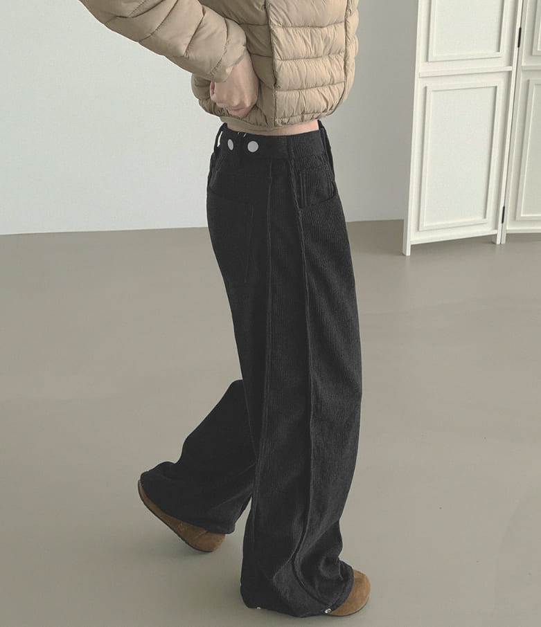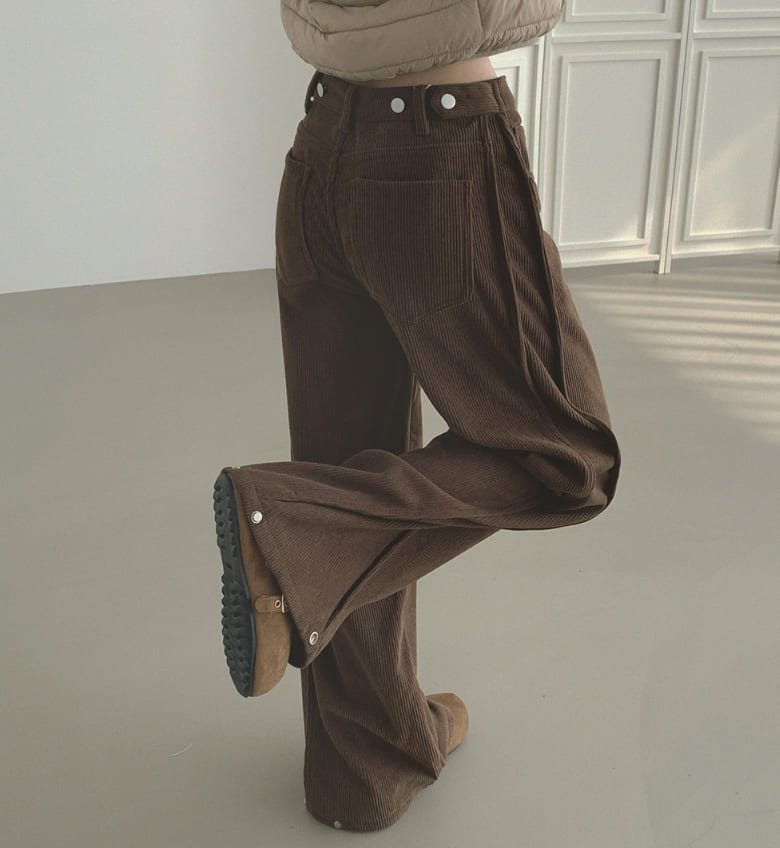 Brushed Corduroy Hem Snap Cut Pin Tuck Adjust Wide Balloon Pants