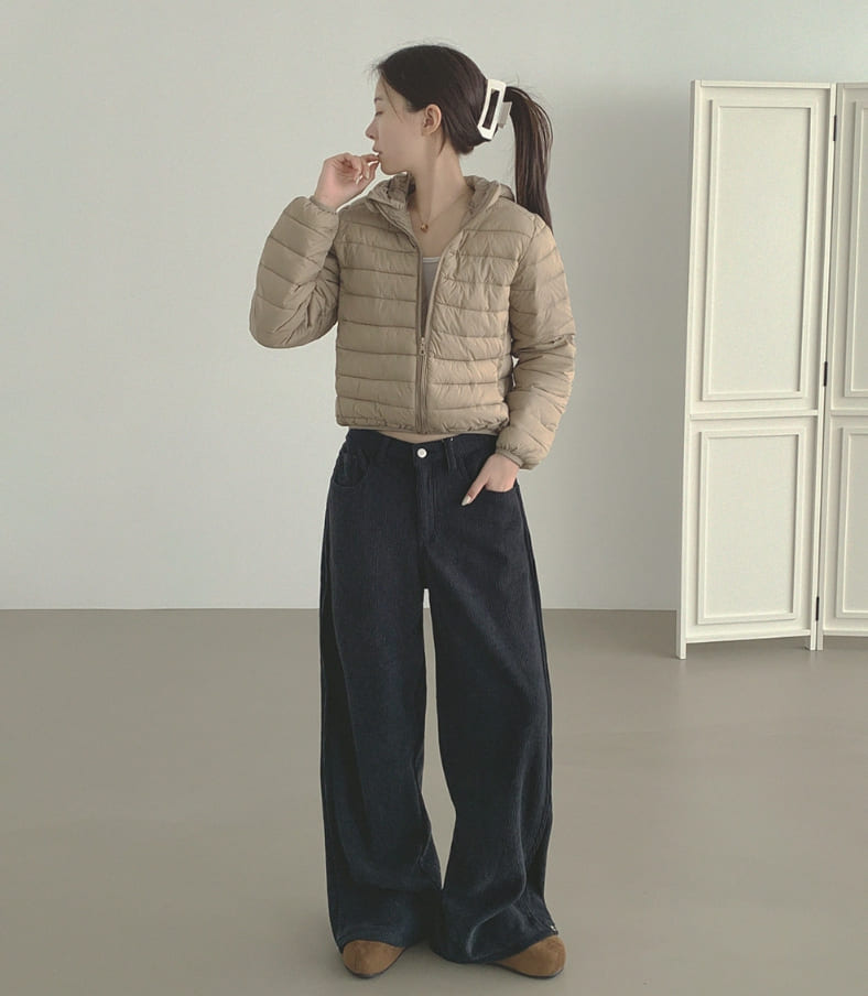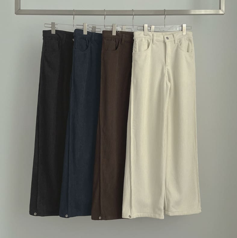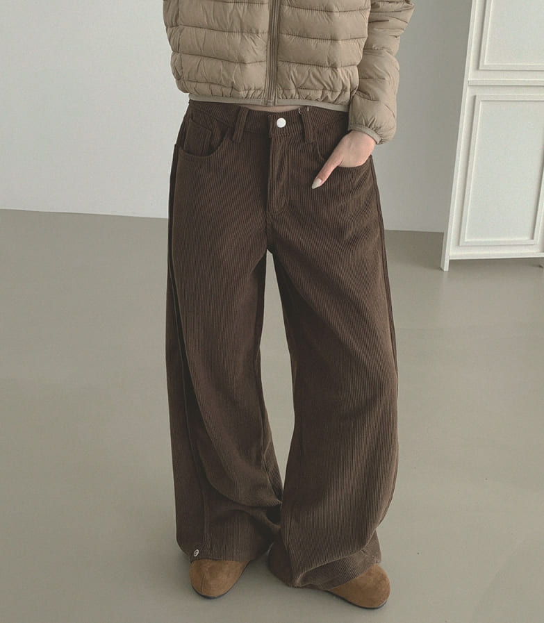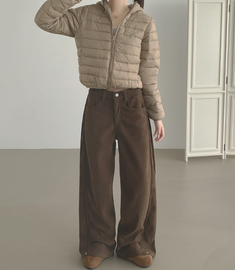 Brushed Corduroy Hem Snap Cut Pin Tuck Adjust Wide Balloon Pants