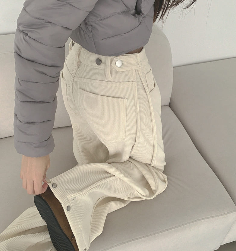 裏起毛コーデュロイヘムスナップカットピンタックアジャスターワイドバルーンパンツ