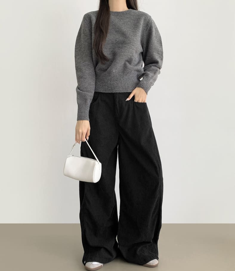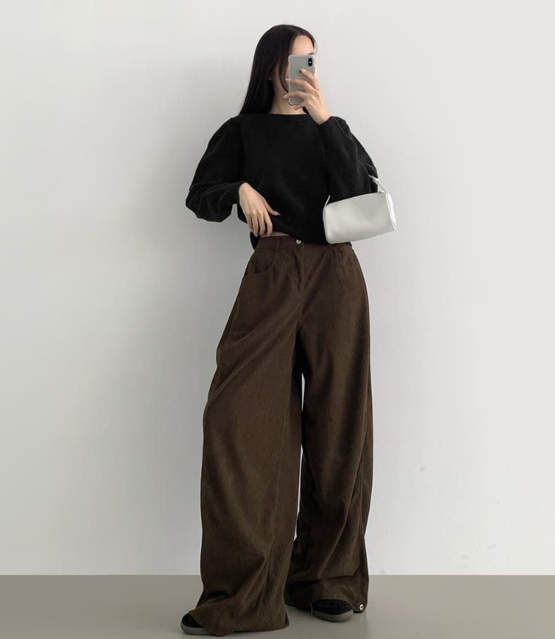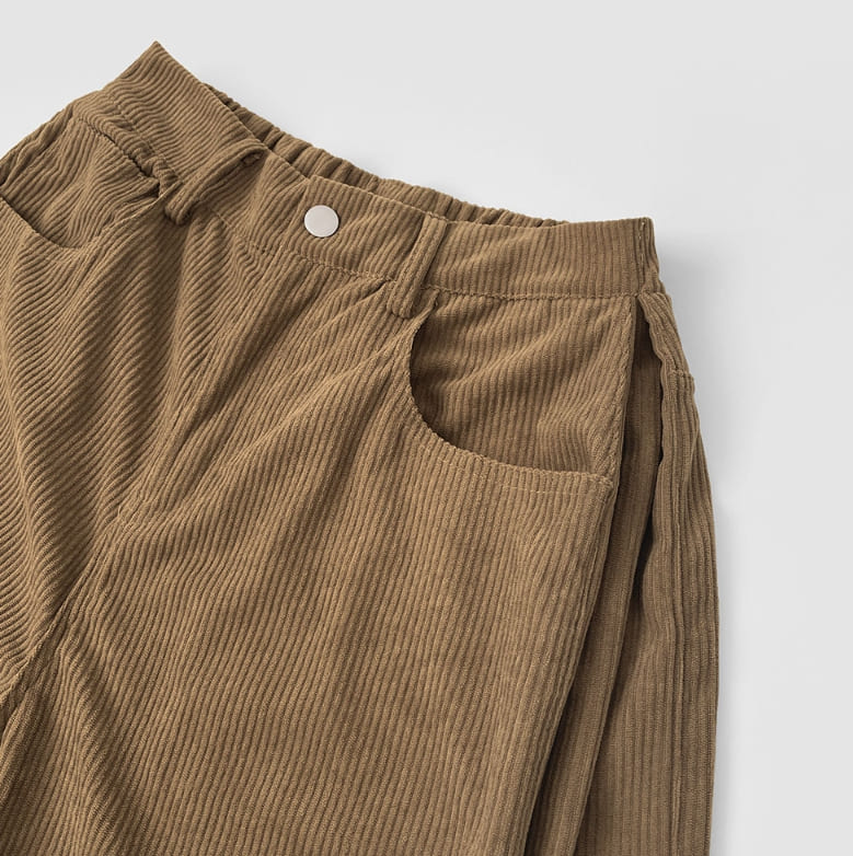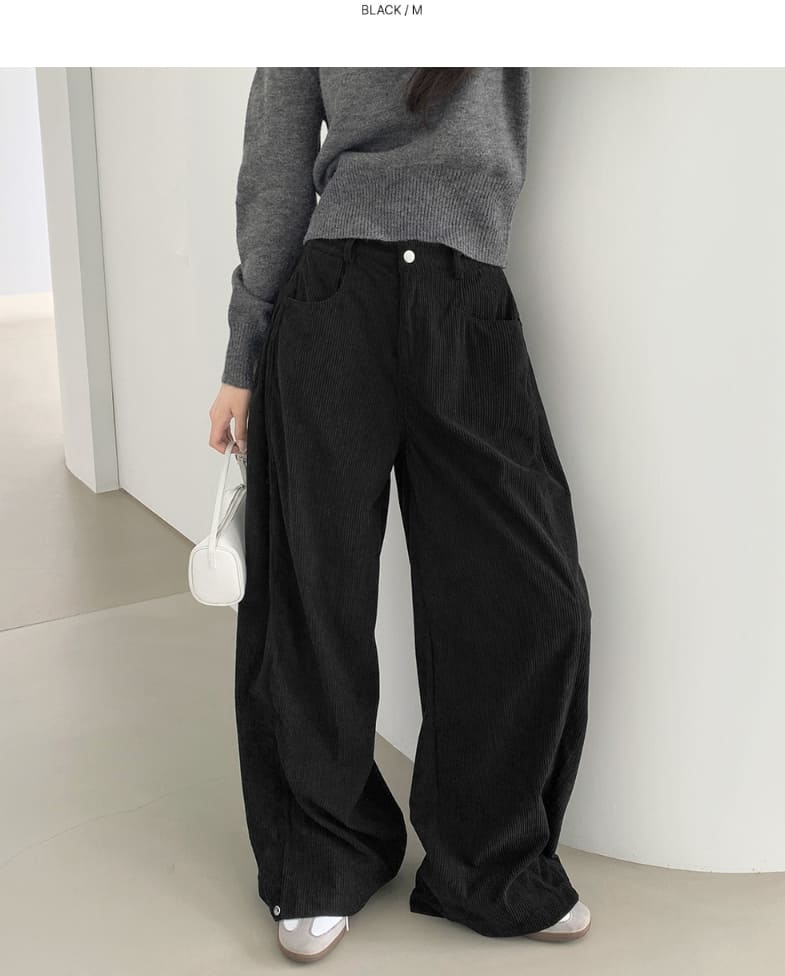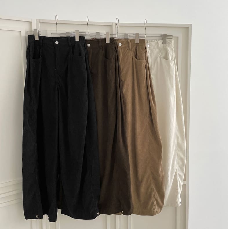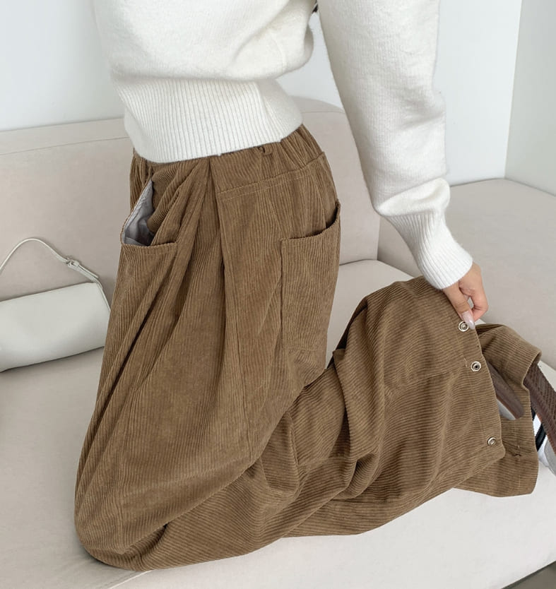 Corduroy Folding Pintuck Hem Snap Wide Banding Pants