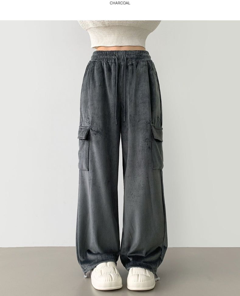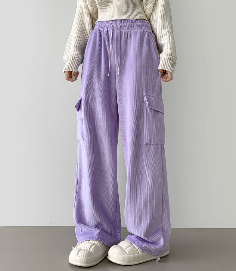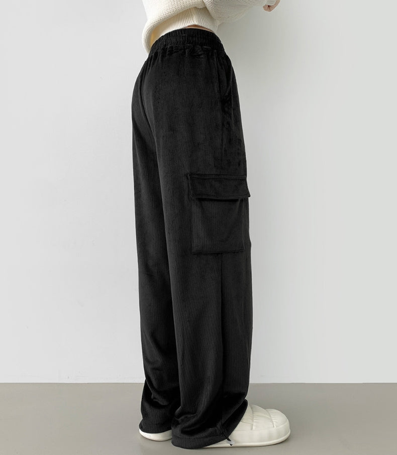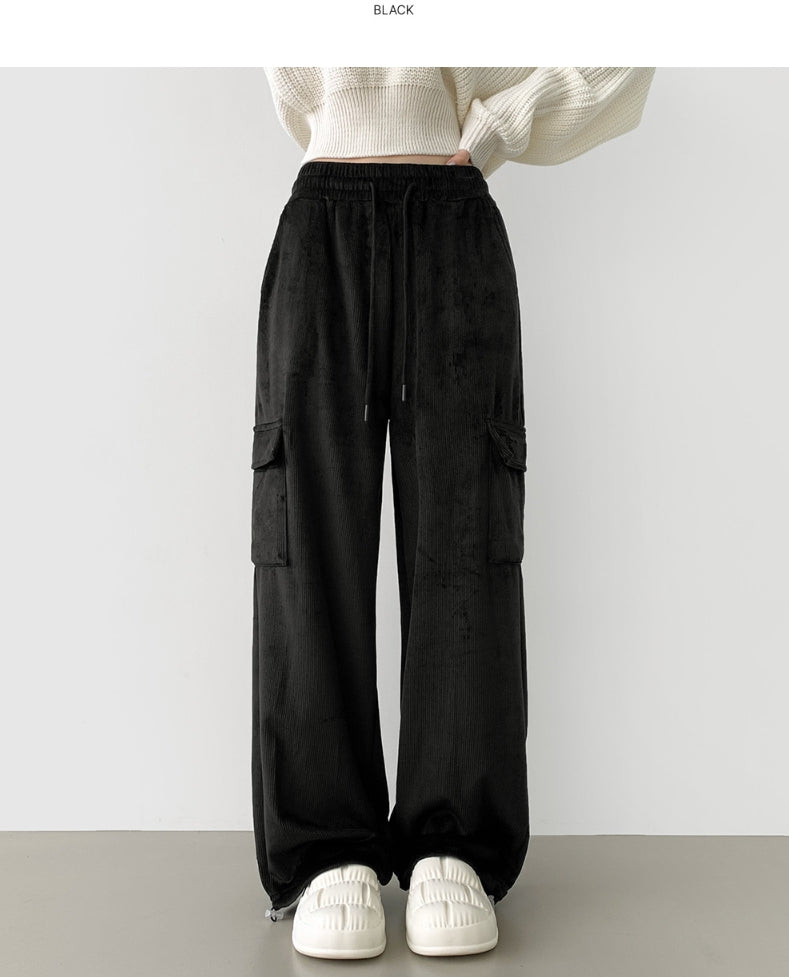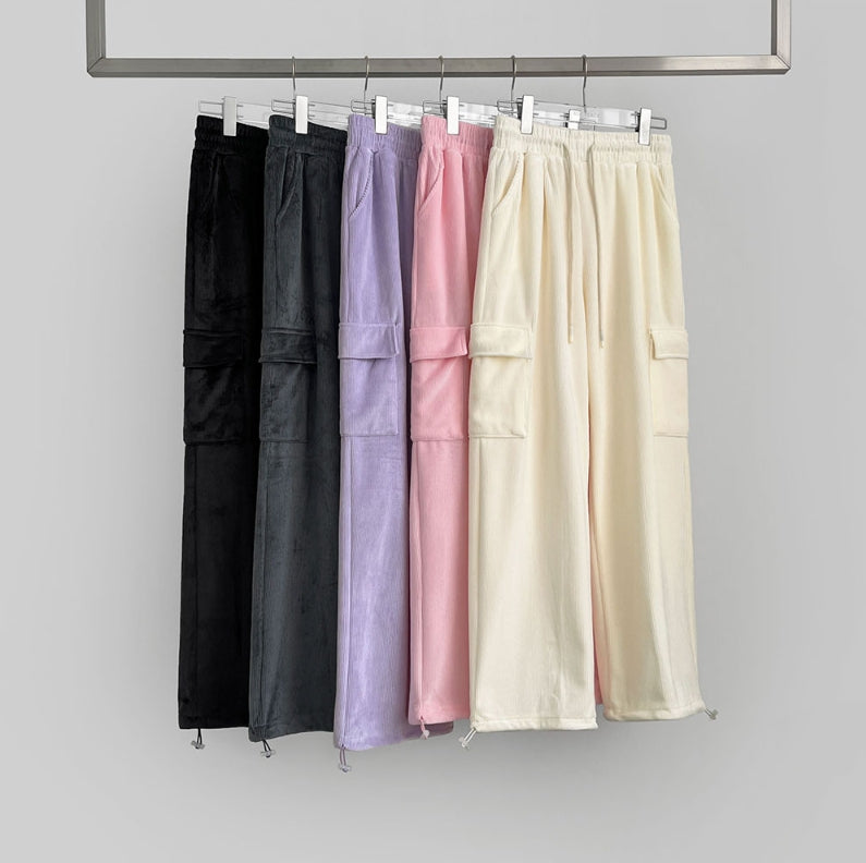 Corduroy Microfiber Velvet Pocket Cargo Long Wide Banding Pants