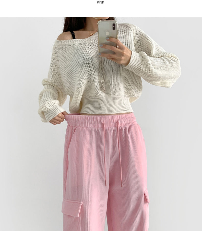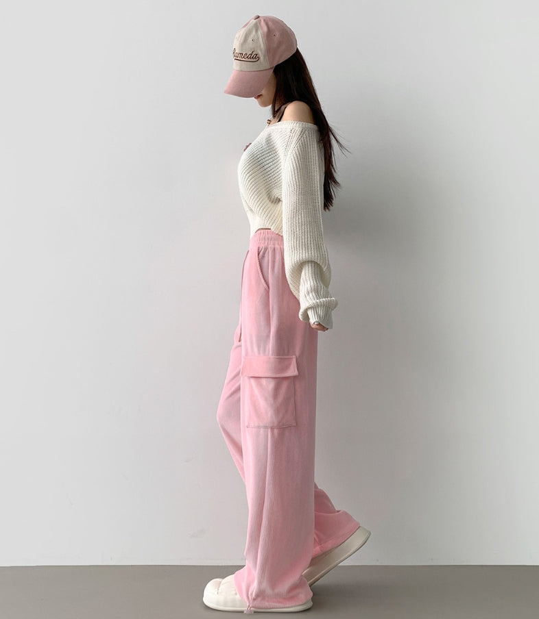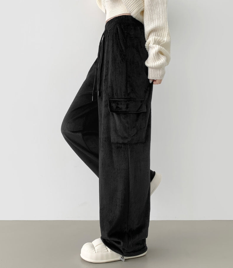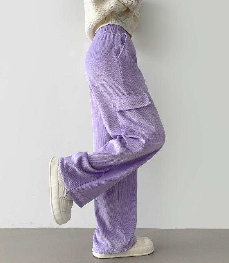 Corduroy Microfiber Velvet Pocket Cargo Long Wide Banding Pants