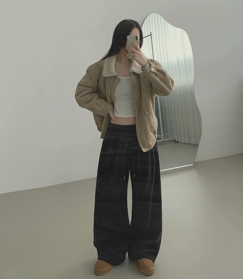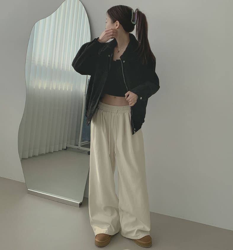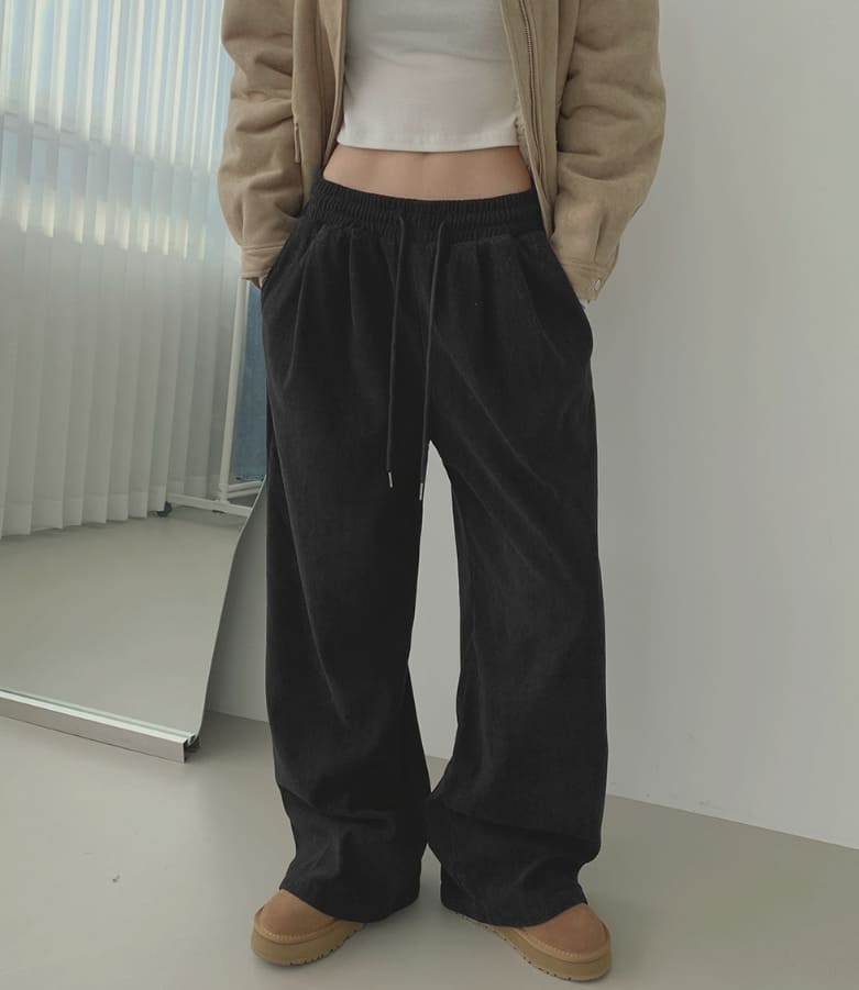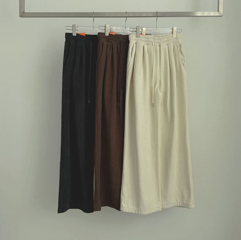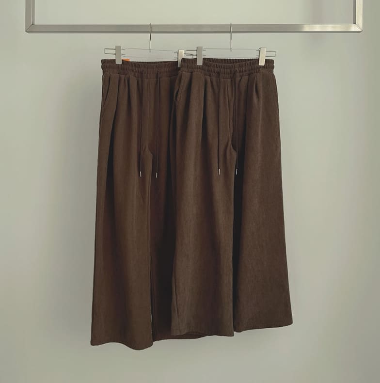 Corduroy Wool Pin Tuck Wide Banding Pants