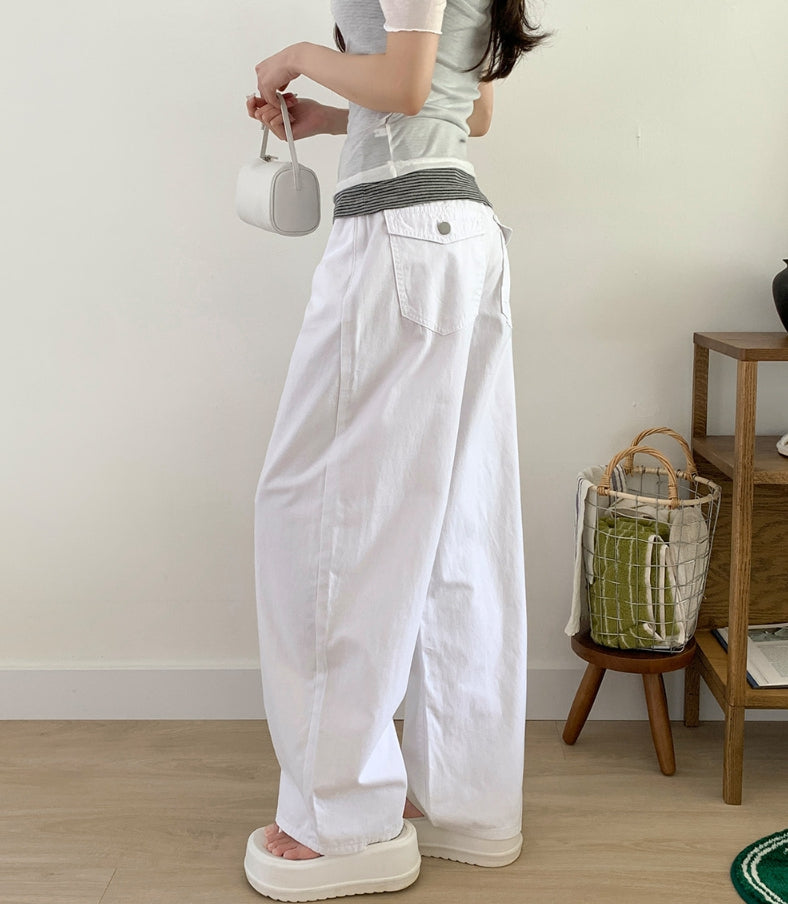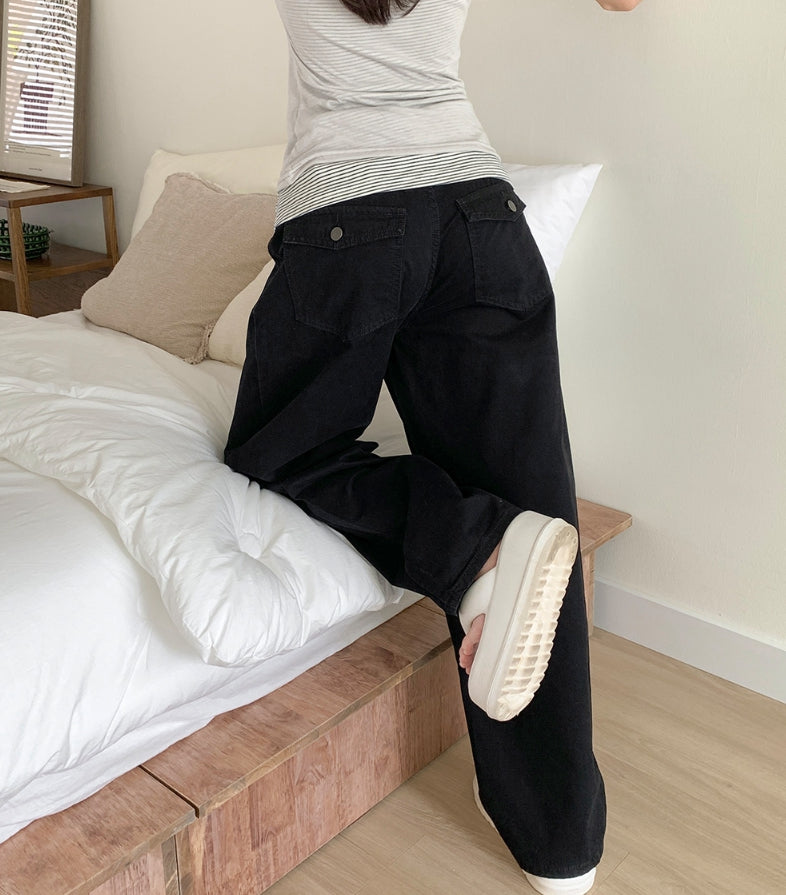デイリーバックポケットバックポイントワイドコットンパンツ