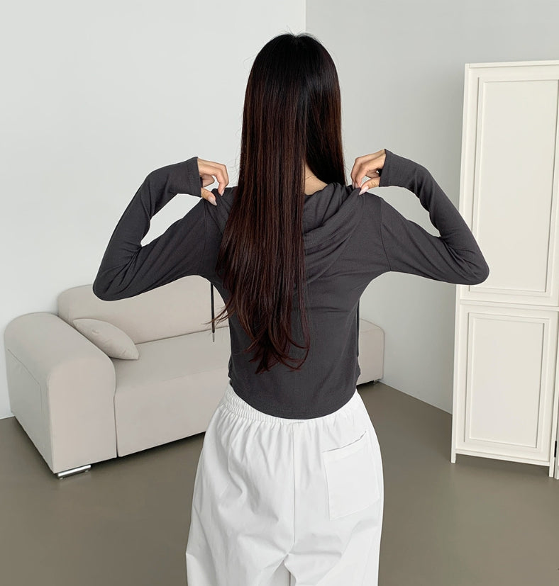 Daily Basic Slim Fit Long Sleeve Hood T-Shirt